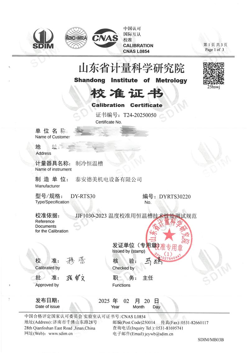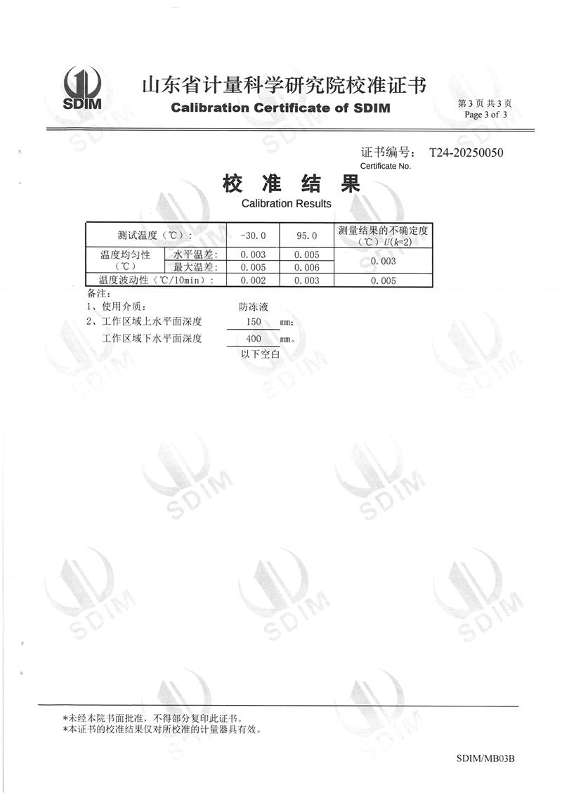 | 上一條:恒溫油槽(70~300℃)校準(zhǔn)證書(shū) | 下一條:便攜式干體爐(-30-150℃)校準(zhǔn)證書(shū) |