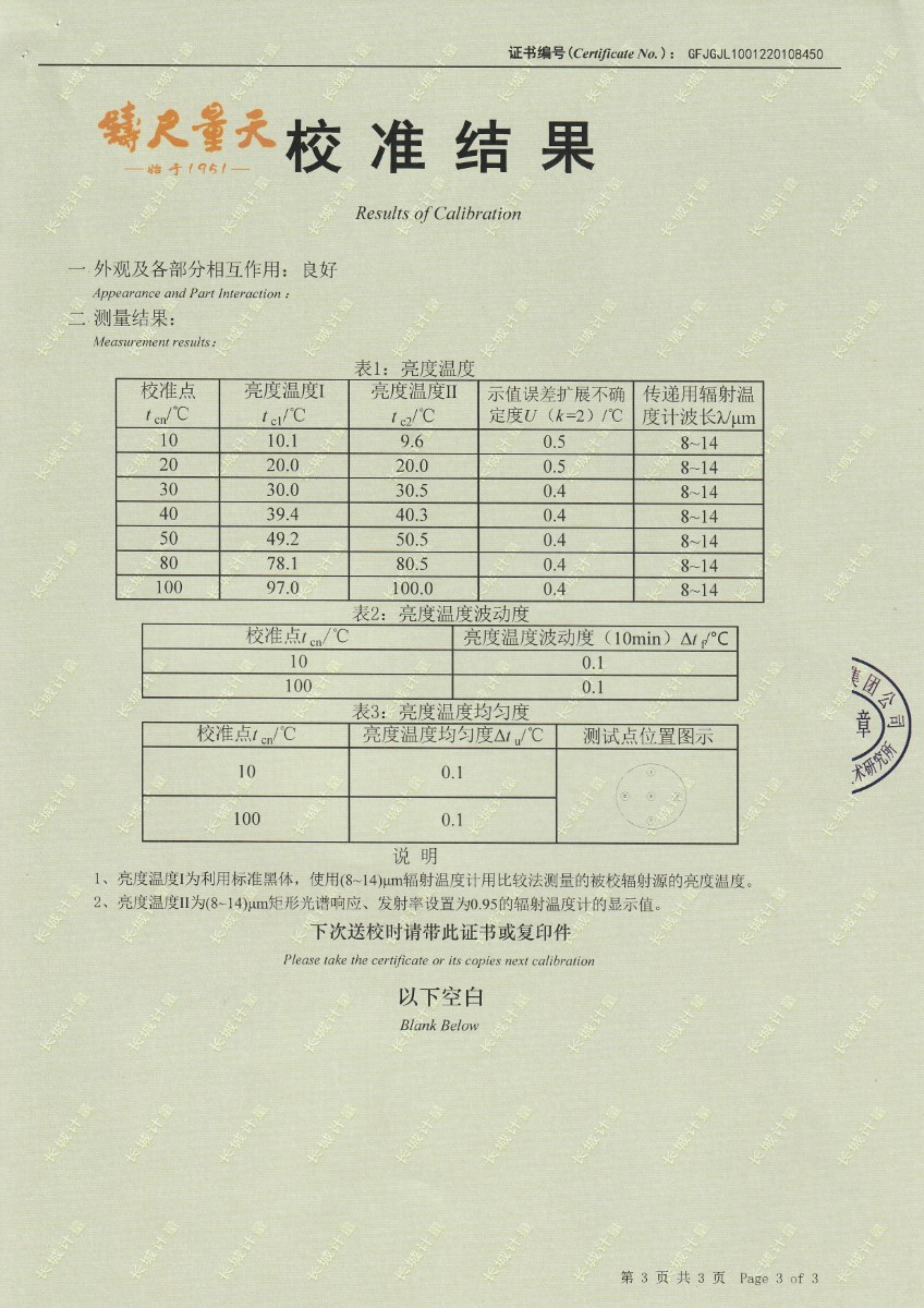 | 上一條:華道(上海)生物醫(yī)藥有限公司-制冷恒溫槽 | 下一條:便攜式干體爐(-30-150℃)校準(zhǔn)證書 |