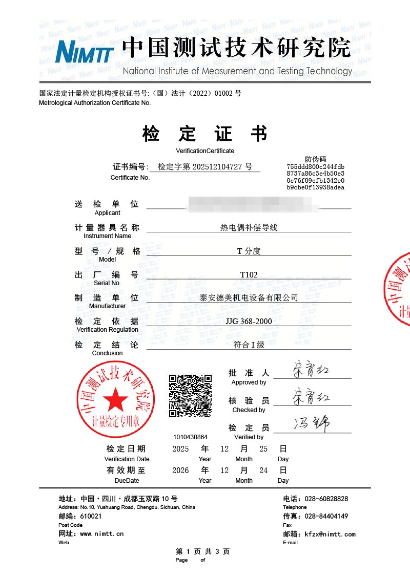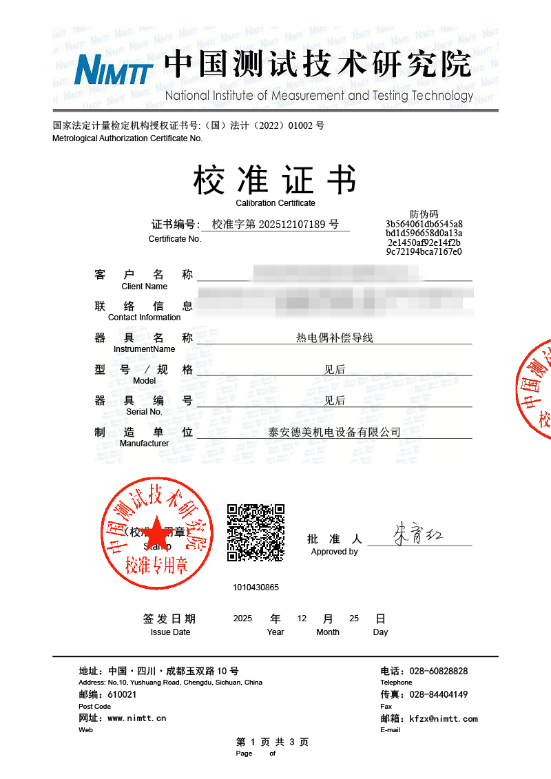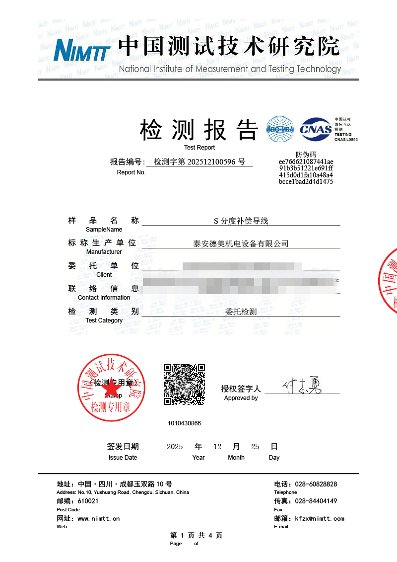 補(bǔ)償導(dǎo)線檢測(cè)、檢定、校準(zhǔn)報(bào)告 2026-1-4 本文被閱讀 603 次