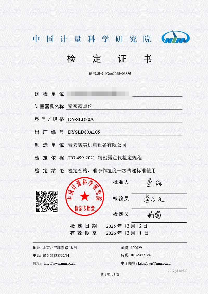 露點儀校準系統(tǒng)校準證書 2026-1-4 本文被閱讀 836 次