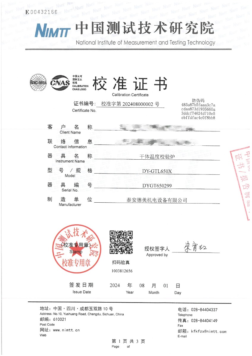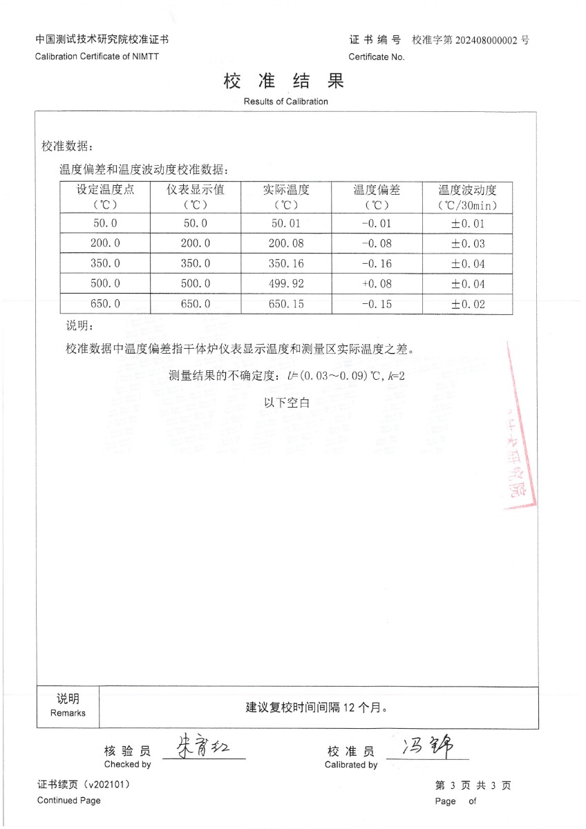 干體爐299(室溫+5℃~650℃)校準證書 2024-8-5 本文被閱讀 6142 次
