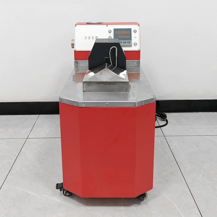 產(chǎn)品采用先進(jìn)的自動控制系統(tǒng),界面友好,操作方便,控制精度高。主要是由加熱系統(tǒng)、控溫系統(tǒng)、攪拌系統(tǒng)所組成。槽體分混合區(qū)與工作區(qū)。在混合區(qū)內(nèi)由加熱器產(chǎn)生的熱量使槽內(nèi)固態(tài)鹽(介質(zhì))升溫熔化成鹽液,當(dāng)鹽液溫度上升到接近設(shè)定溫度時,控溫系統(tǒng)根據(jù)感溫器測得的溫度來控制加熱器工作,再經(jīng)過攪拌系統(tǒng)的強(qiáng)烈攪拌充分均勻后的鹽液(介質(zhì))送入少受外界干擾的工作區(qū)。從而得到一個溫度穩(wěn)定溫場均勻的液體空間。