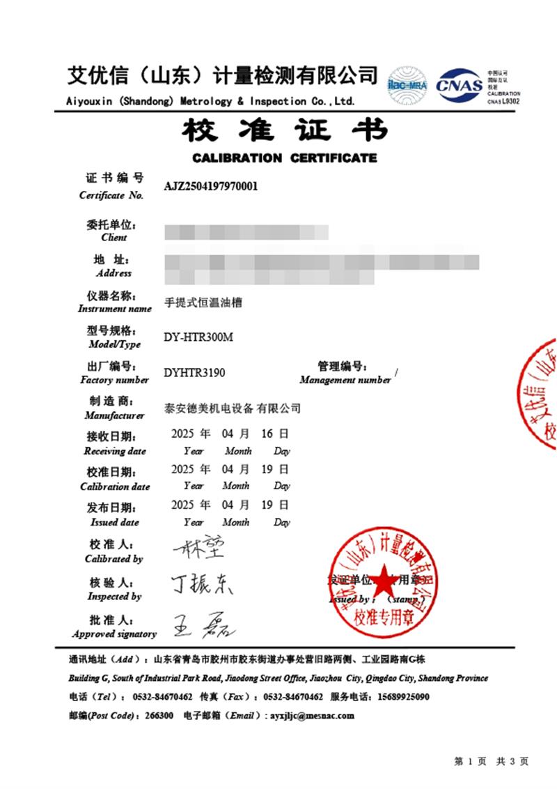 手提式恒溫油槽(70-300℃)校準證書 2025-4-29 本文被閱讀 2502 次