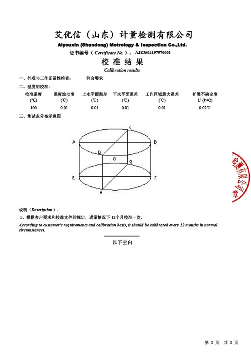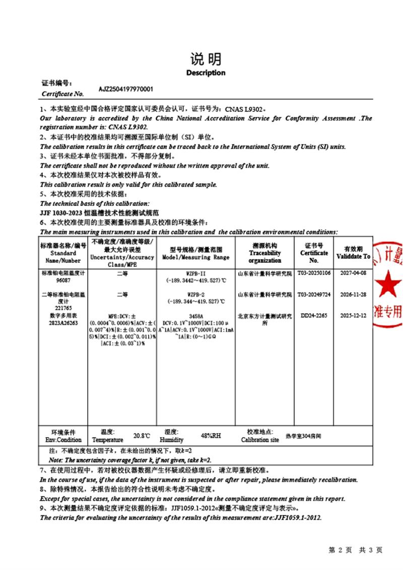 上一條:干體溫度校驗爐(300-1200℃)校準證書下一條:超低溫面源黑體爐(-40-80℃)校準證書