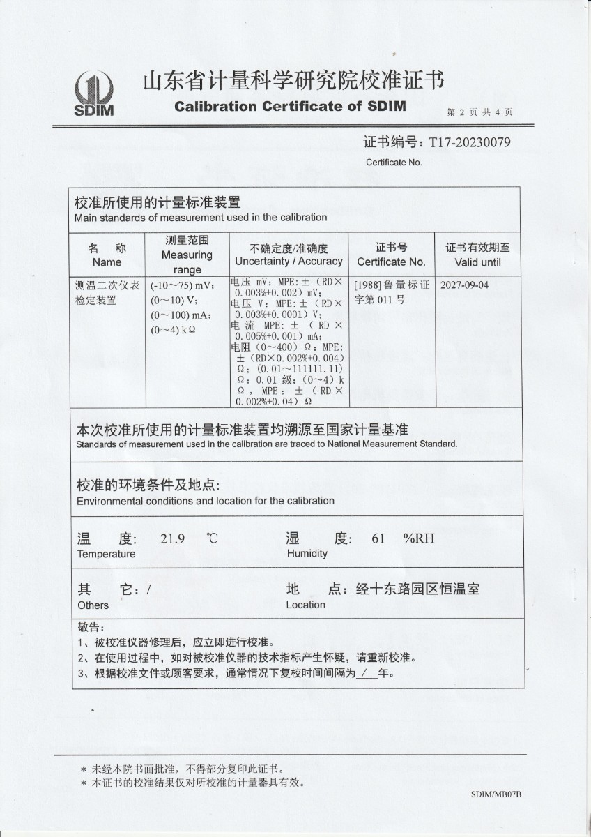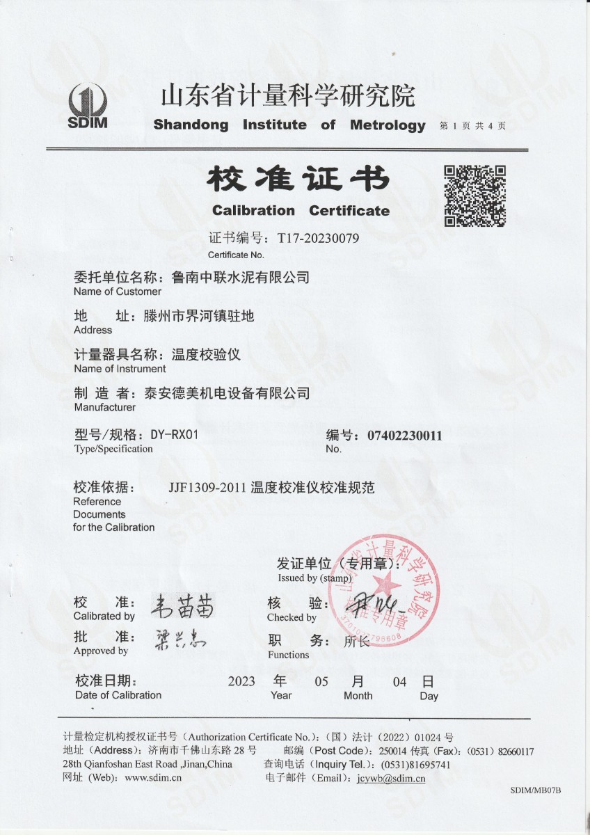 | 上一條:魯南中聯(lián)水泥有限公司 高精度數(shù)字溫度計(jì) 校準(zhǔn)證書 | 下一條:DY-HT2MF-800大面源黑體爐 |