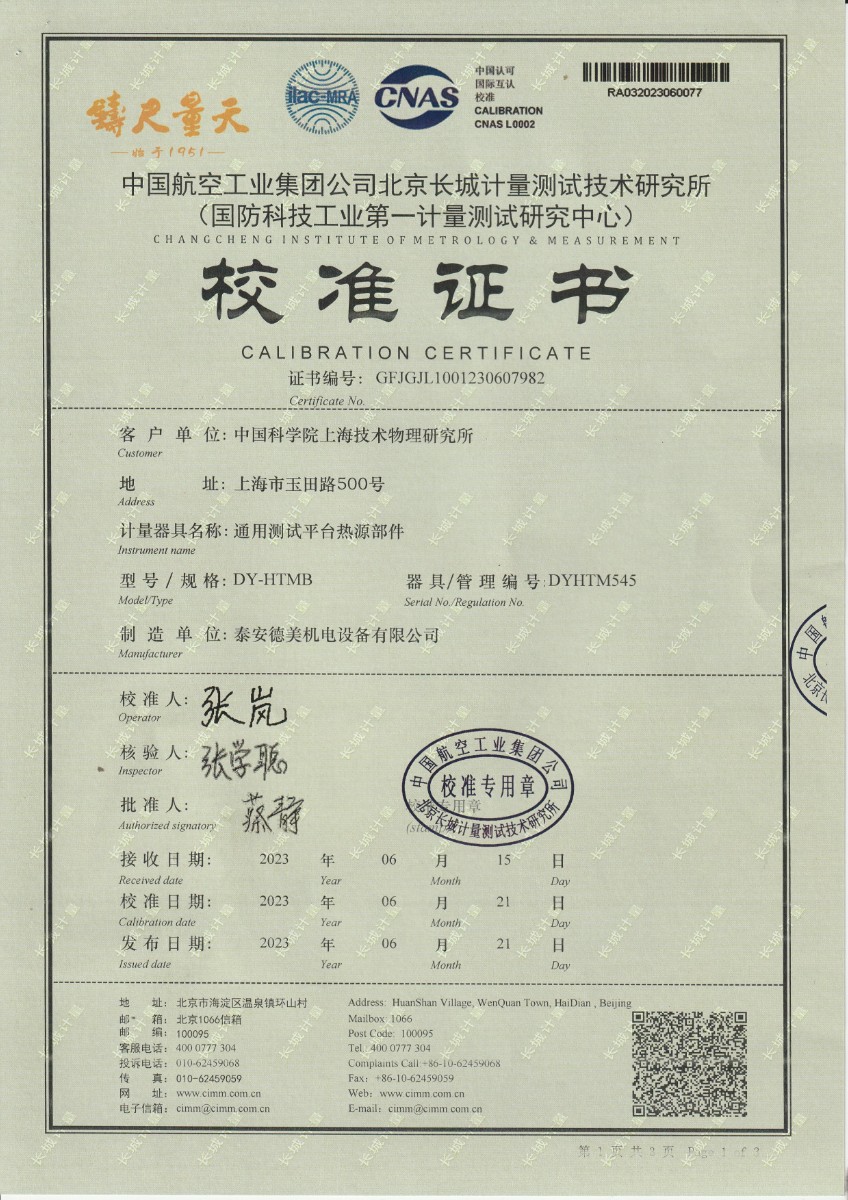 | 上一條:深圳村田科技有限公司-溫濕度檢定箱 | 下一條:便攜式干體爐(-30-150℃)校準(zhǔn)證書 |