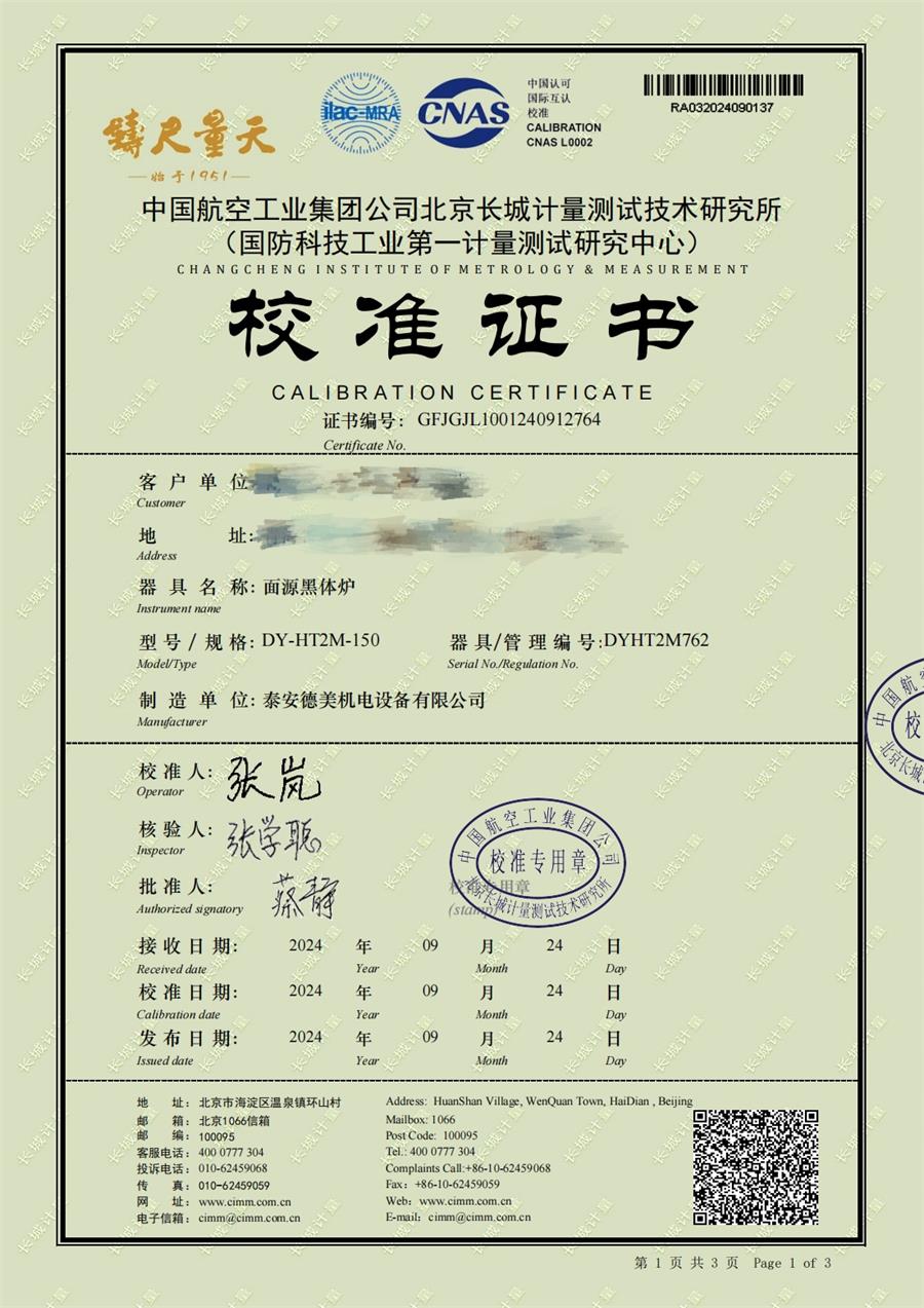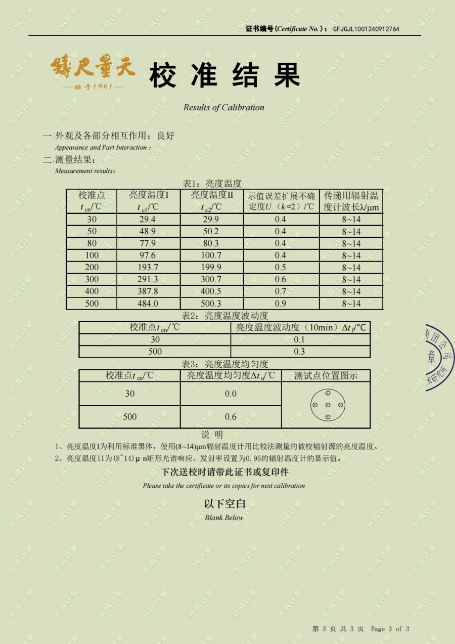 | 上一條:黑體輻射源(50-700℃)校準(zhǔn)證書(shū) | 下一條:超低溫面源黑體爐(-40-80℃)校準(zhǔn)證書(shū) |