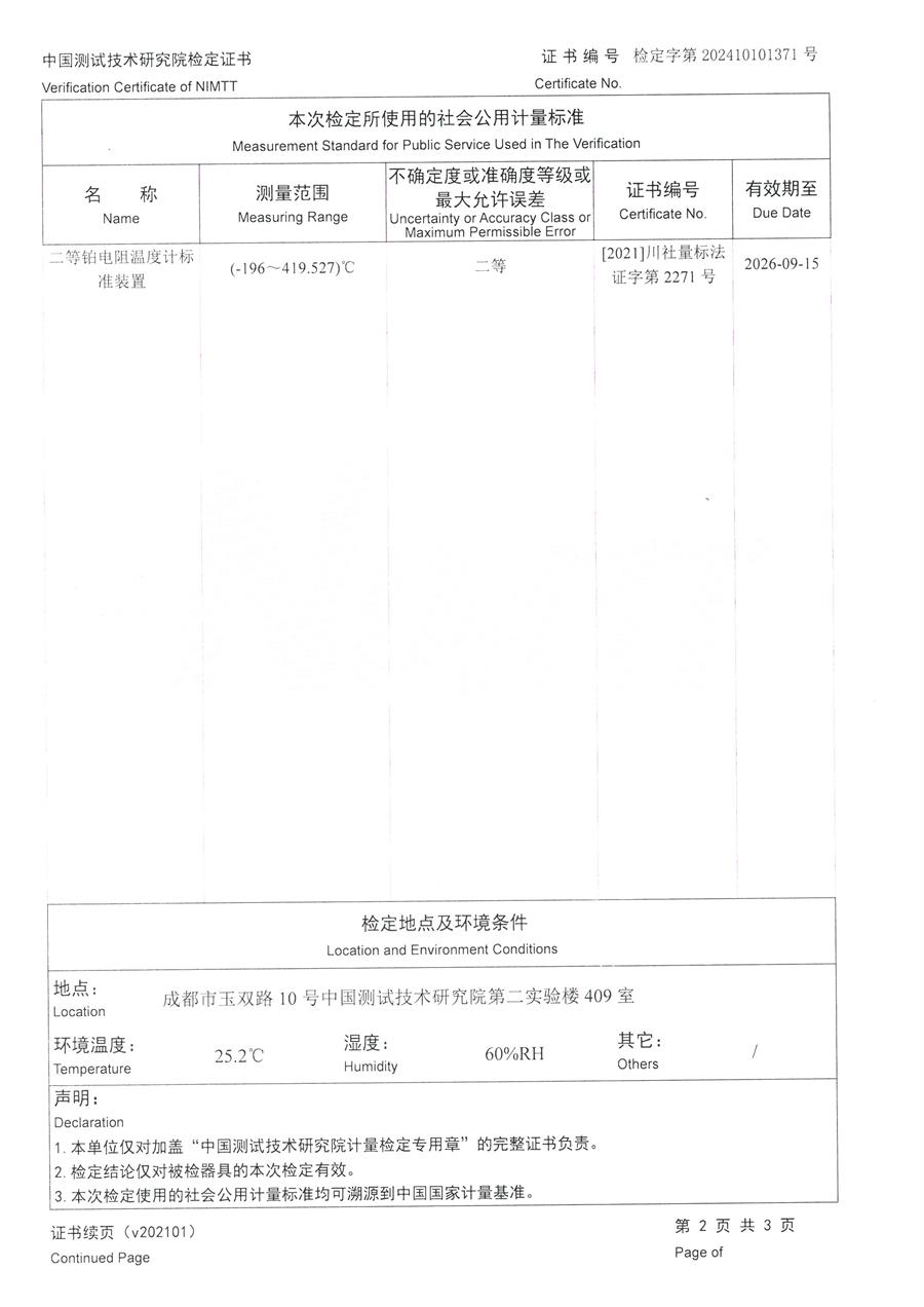 上一條:面源黑體爐(室溫+5-300℃)校準證書下一條:超低溫面源黑體爐(-40-80℃)校準證書