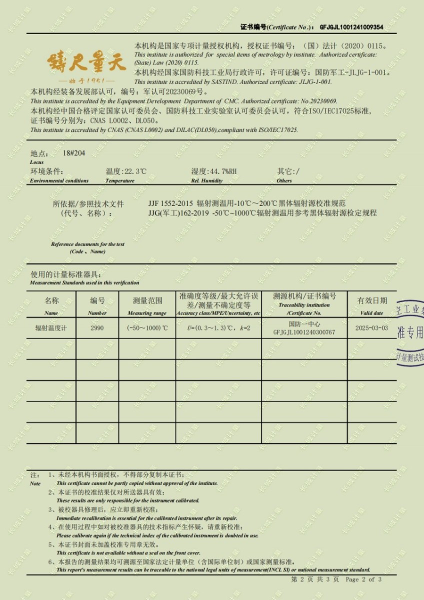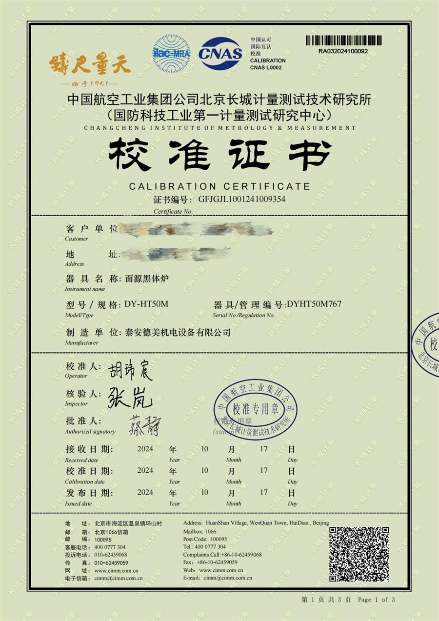 | 上一條:高溫黑體爐(700-1600℃)校準(zhǔn)證書 | 下一條:超低溫面源黑體爐(-40-80℃)校準(zhǔn)證書 |