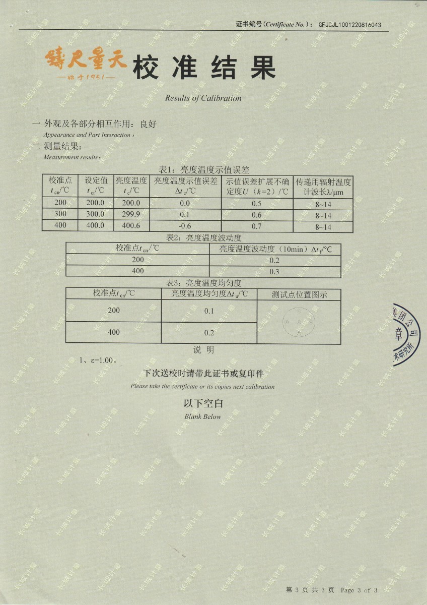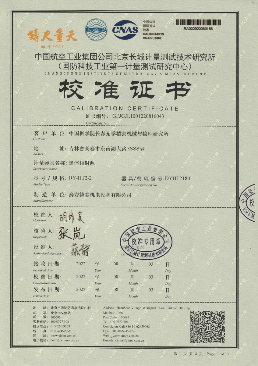 | 上一條:中國(guó)科學(xué)院長(zhǎng)春光學(xué)精密機(jī)械與物理研究所-黑體爐DY-HT2-1 | 下一條:便攜式干體爐(-30-150℃)校準(zhǔn)證書 |