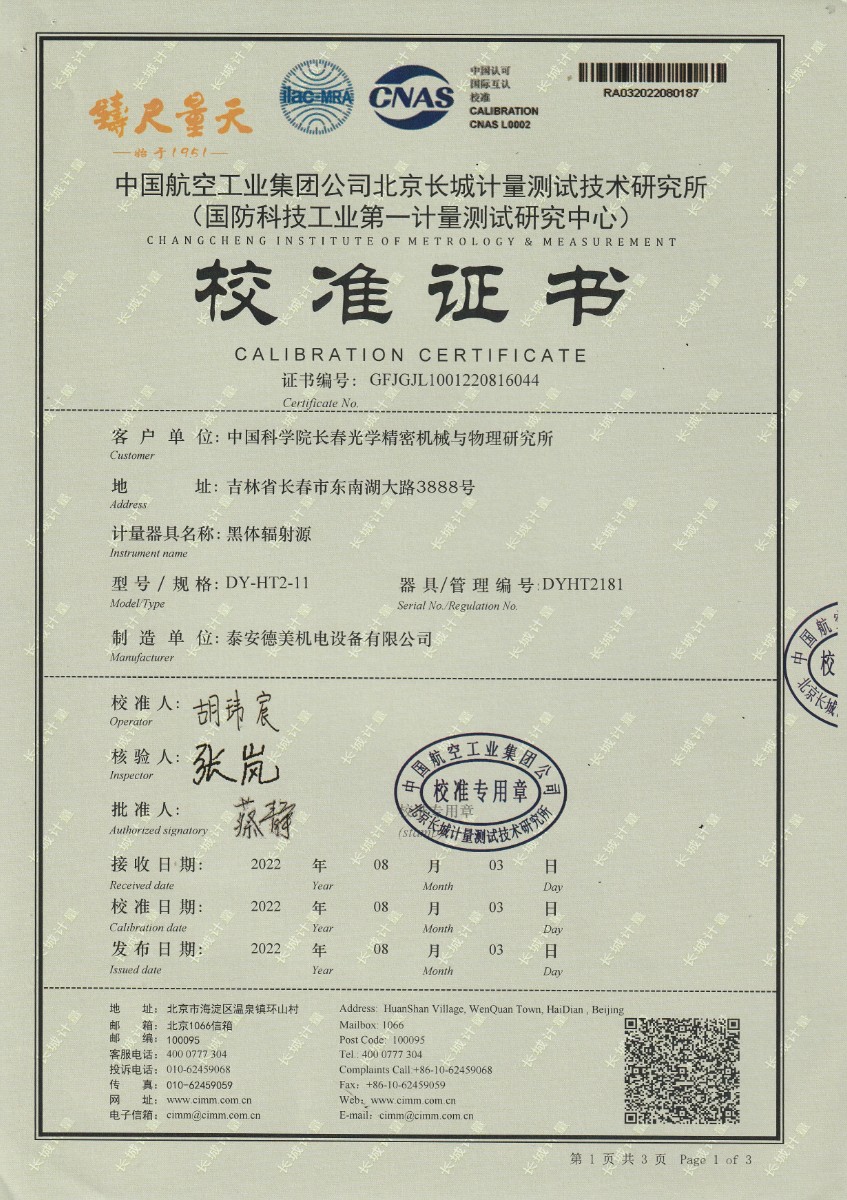 | 上一條:中國科學(xué)院長春光學(xué)精密機(jī)械與物理研究所-黑體爐DY-HT2-2 | 下一條:便攜式干體爐(-30-150℃)校準(zhǔn)證書 |