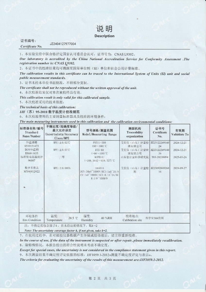 上一條:便攜式恒溫油槽校準(zhǔn)證書下一條:便攜式干體爐(-30-150℃)校準(zhǔn)證書