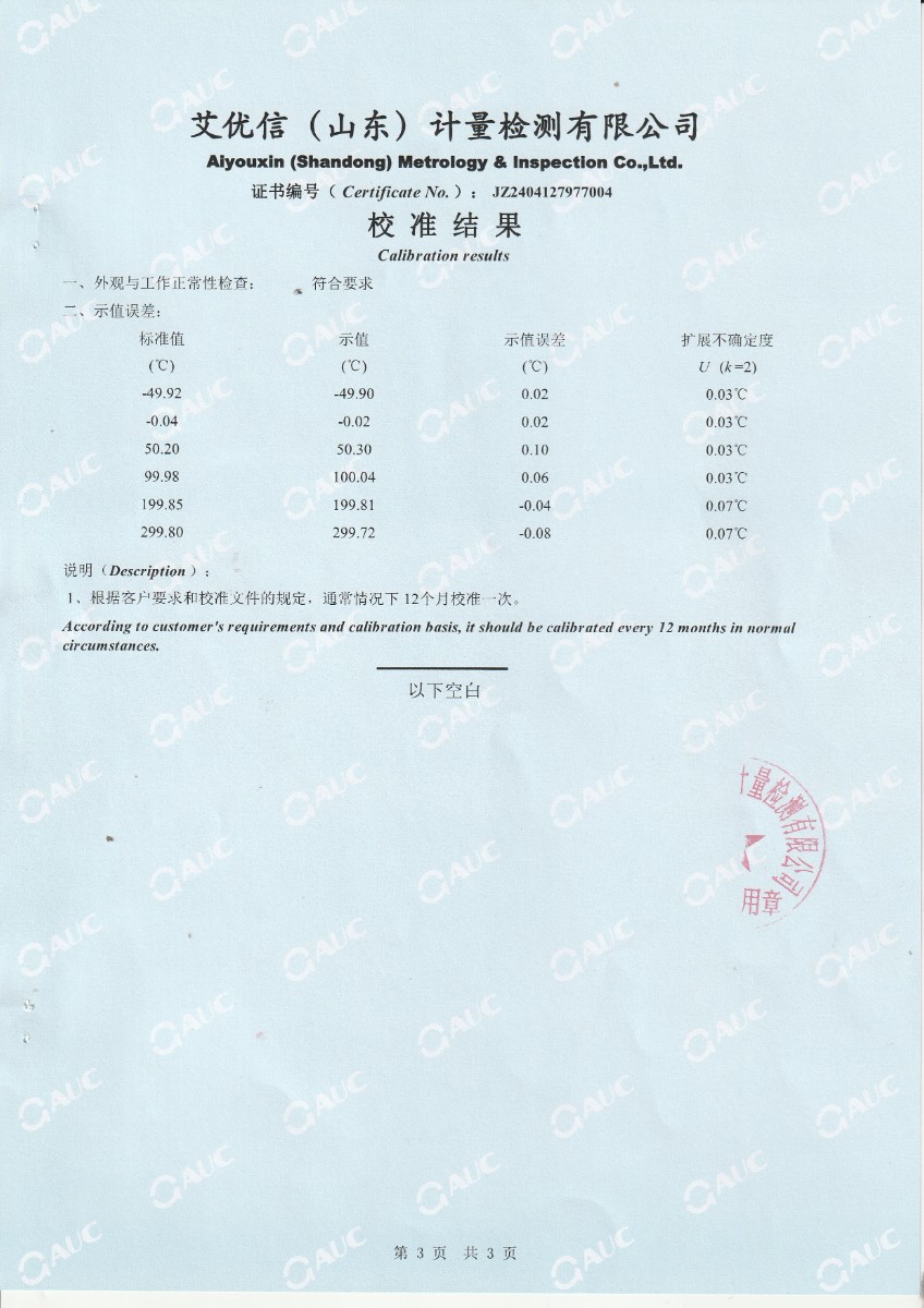 高精度數(shù)字溫度計校準(zhǔn)證書