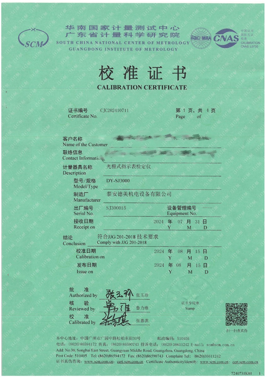 | 上一條:自動(dòng)檢定系統(tǒng)校準(zhǔn)證書(shū) | 下一條:超低溫面源黑體爐(-40-80℃)校準(zhǔn)證書(shū) |