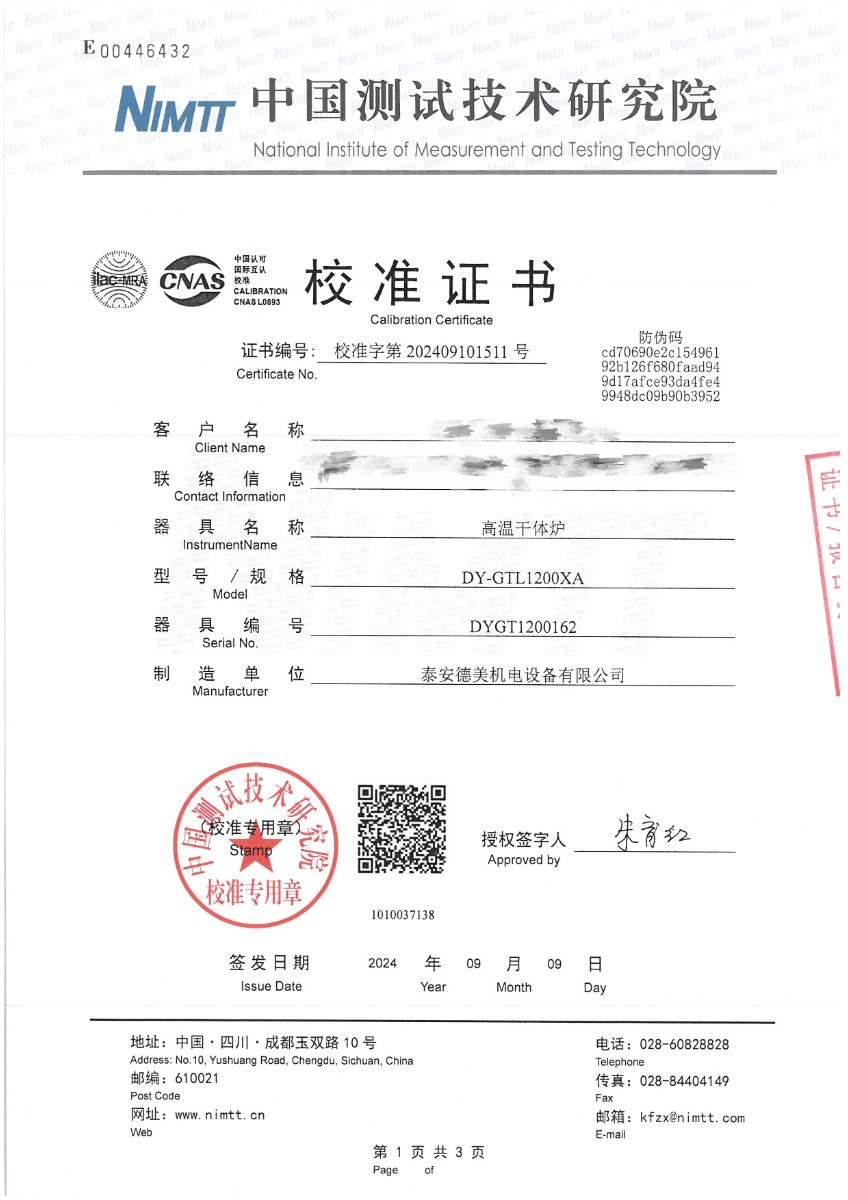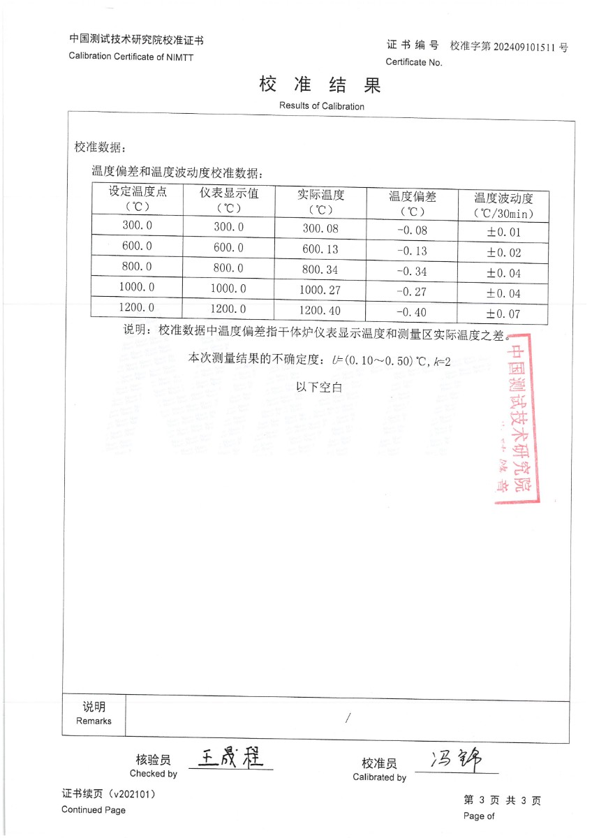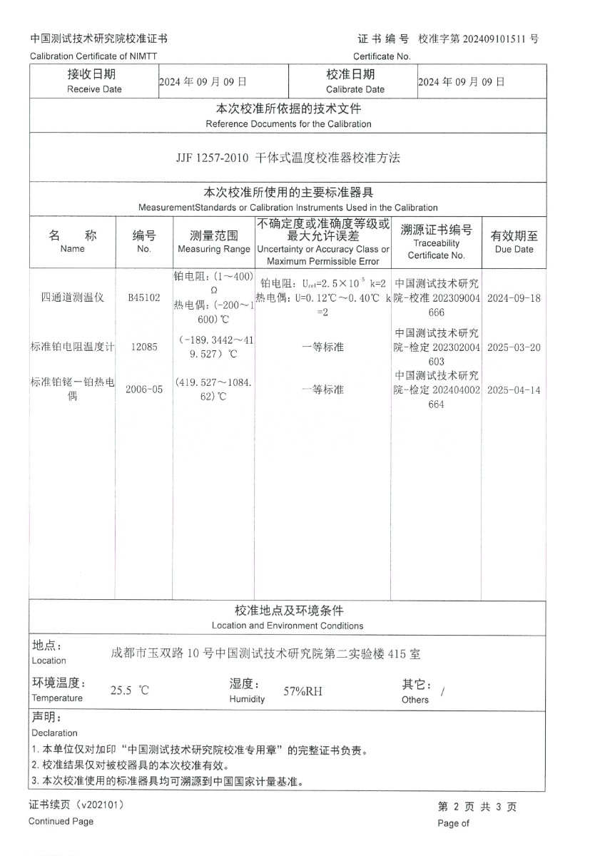 | 上一條:泰安德美-輻射溫度計(-30~900℃)校準(zhǔn)證書 | 下一條:超低溫面源黑體爐(-40-80℃)校準(zhǔn)證書 |