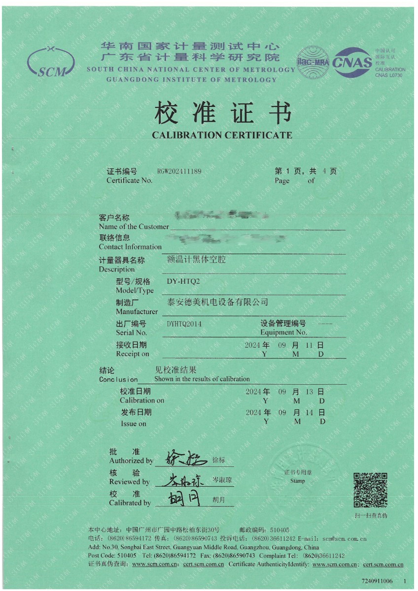 | 上一條:體溫計專用黑體恒溫槽(-20~100℃)校準(zhǔn)證書 | 下一條:超低溫面源黑體爐(-40-80℃)校準(zhǔn)證書 |