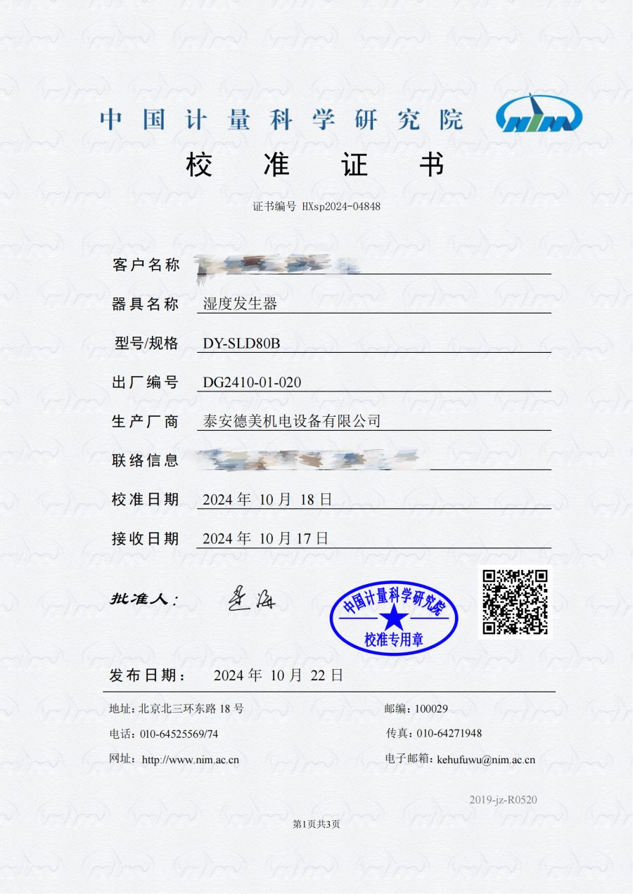 標(biāo)準(zhǔn)濕度發(fā)生器校準(zhǔn)證書 2024-10-25 本文被閱讀 7086 次