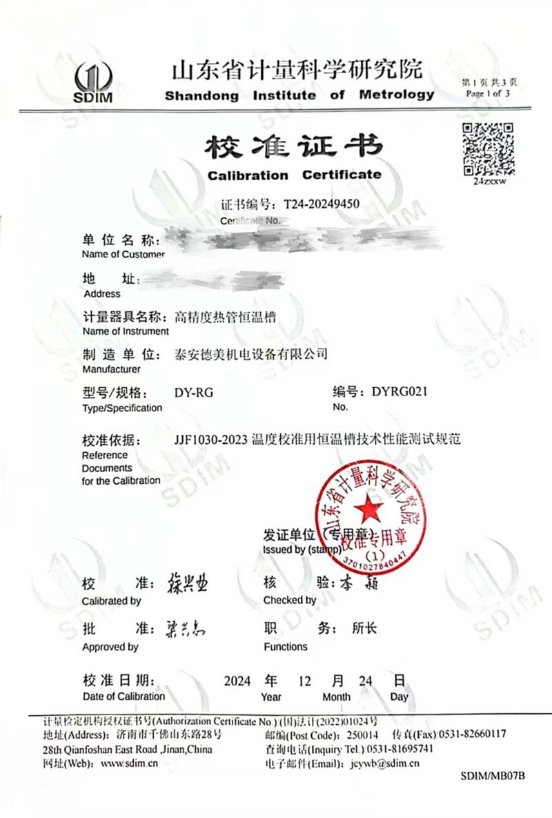 上一條:油槽(70~300℃)校準(zhǔn)證書 | 下一條:便攜式干體爐(-30-150℃)校準(zhǔn)證書 |