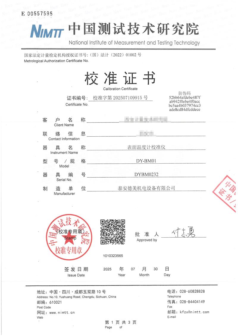 | 上一條:高精度低溫黑體(-10-100℃)校準(zhǔn)證書(shū) | 下一條:超低溫面源黑體爐(-40-80℃)校準(zhǔn)證書(shū) |