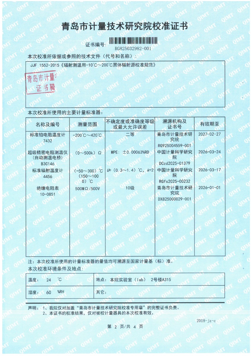 額溫計黑體空腔-校準(zhǔn)證書 2025-9-23 本文被閱讀 1192 次
