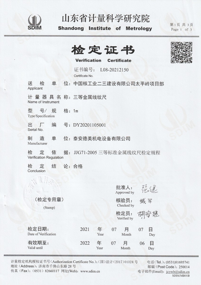 | 上一條:中國核工業(yè)二三建設(shè)有限公司太平嶺項目部-零點恒溫器 | 下一條:便攜式干體爐(-30-150℃)校準(zhǔn)證書 |