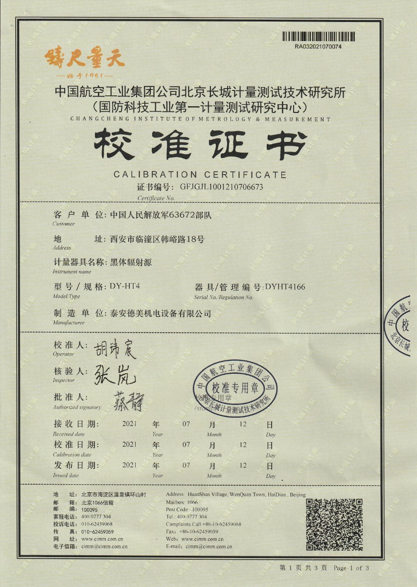 上一條:福建邁格林醫(yī)療科技有限公司-黑體輻射源 | 下一條:便攜式干體爐(-30-150℃)校準(zhǔn)證書(shū) |