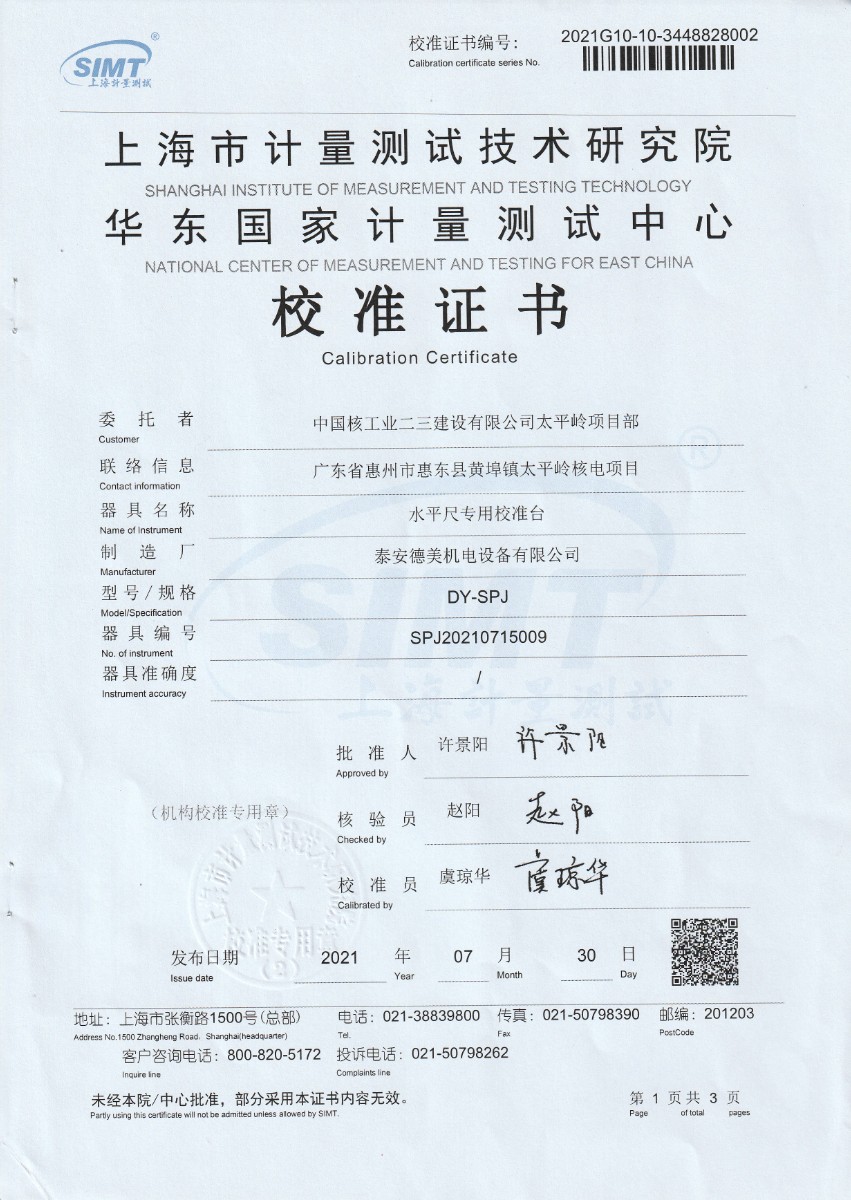 上一條:中國核工業(yè)二三建設(shè)有限公司太平嶺項(xiàng)目部-標(biāo)準(zhǔn)鉑電阻溫度計(jì) | 下一條:便攜式干體爐(-30-150℃)校準(zhǔn)證書 |