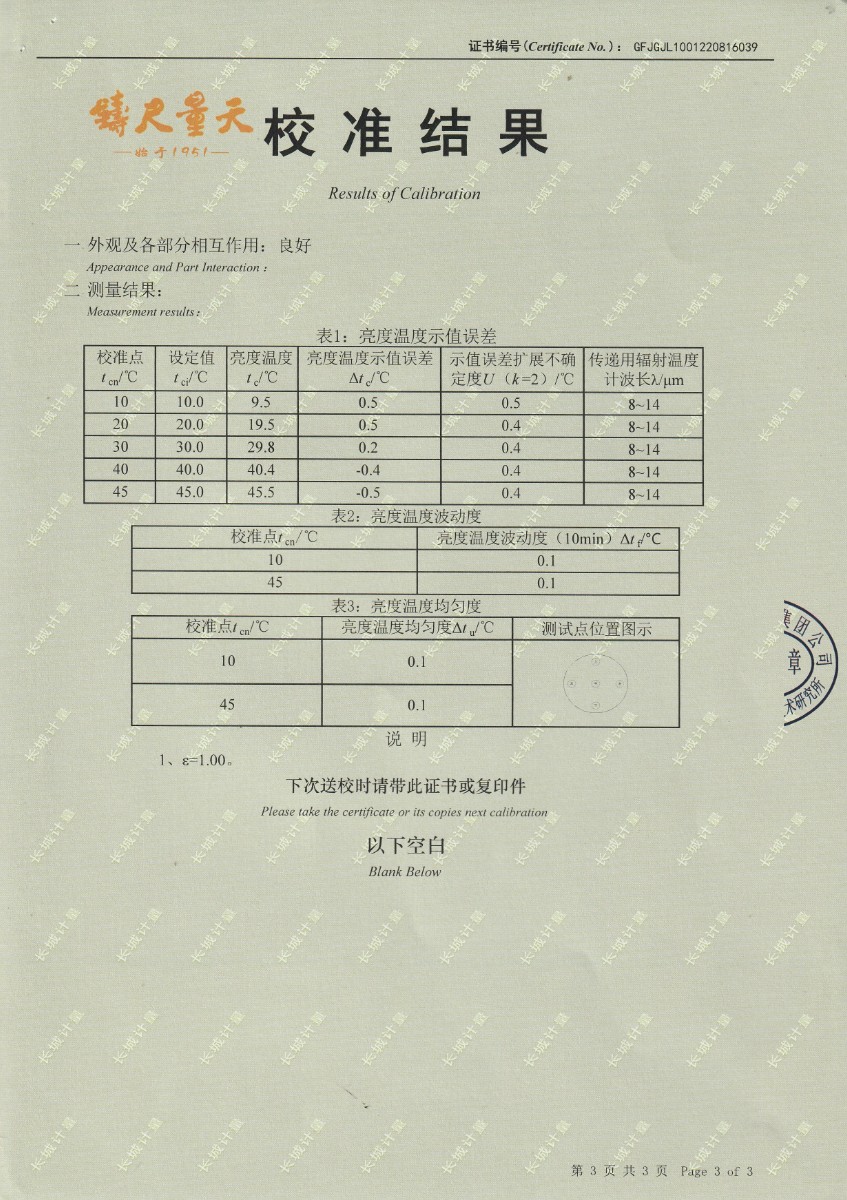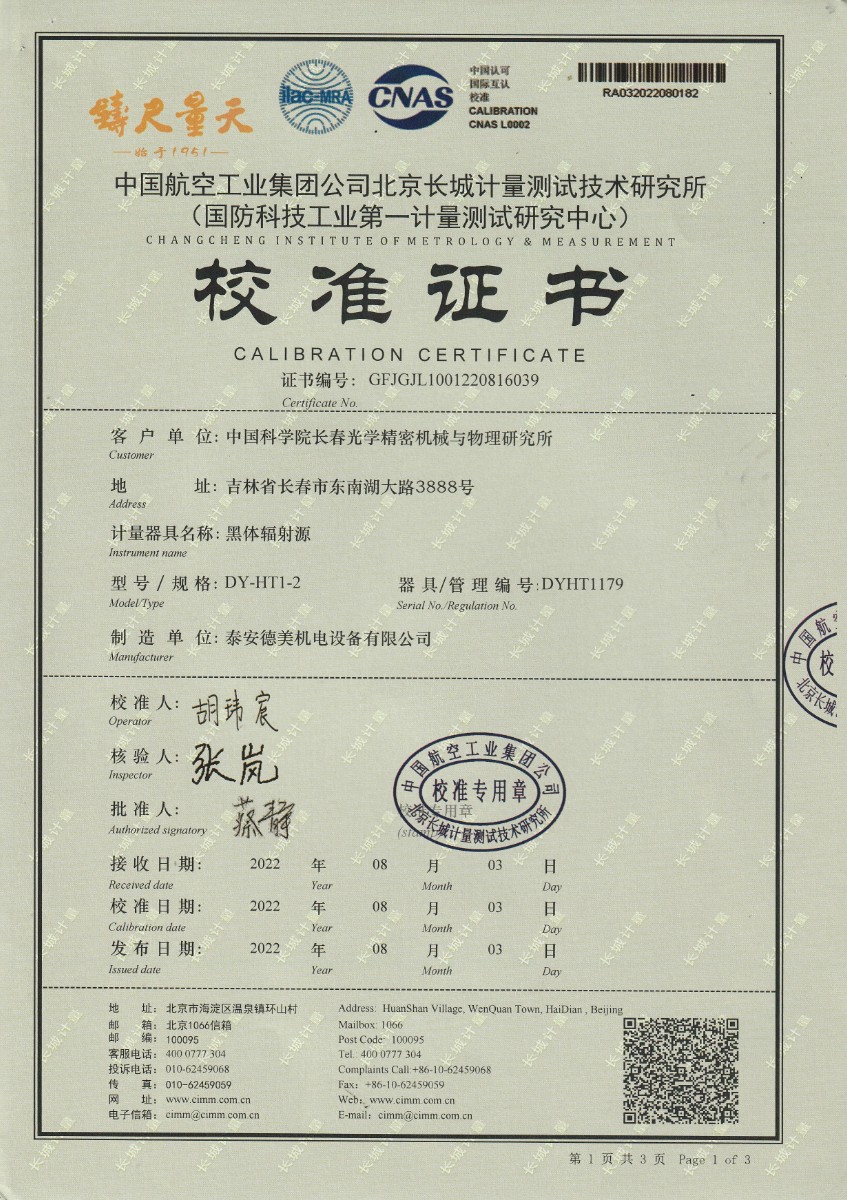 | 上一條:中國(guó)科學(xué)院長(zhǎng)春光學(xué)精密機(jī)械與物理研究所-黑體爐DY-HT1-1 | 下一條:便攜式干體爐(-30-150℃)校準(zhǔn)證書 |