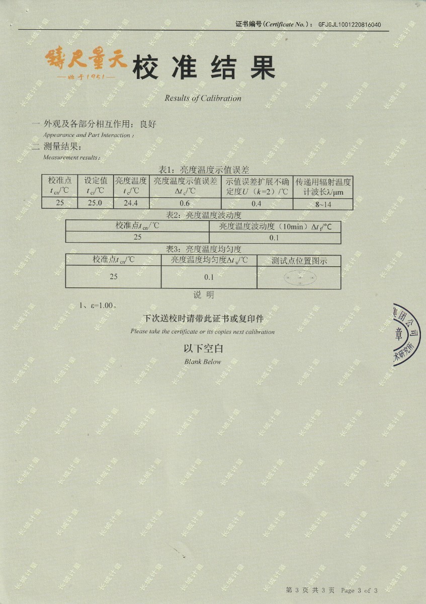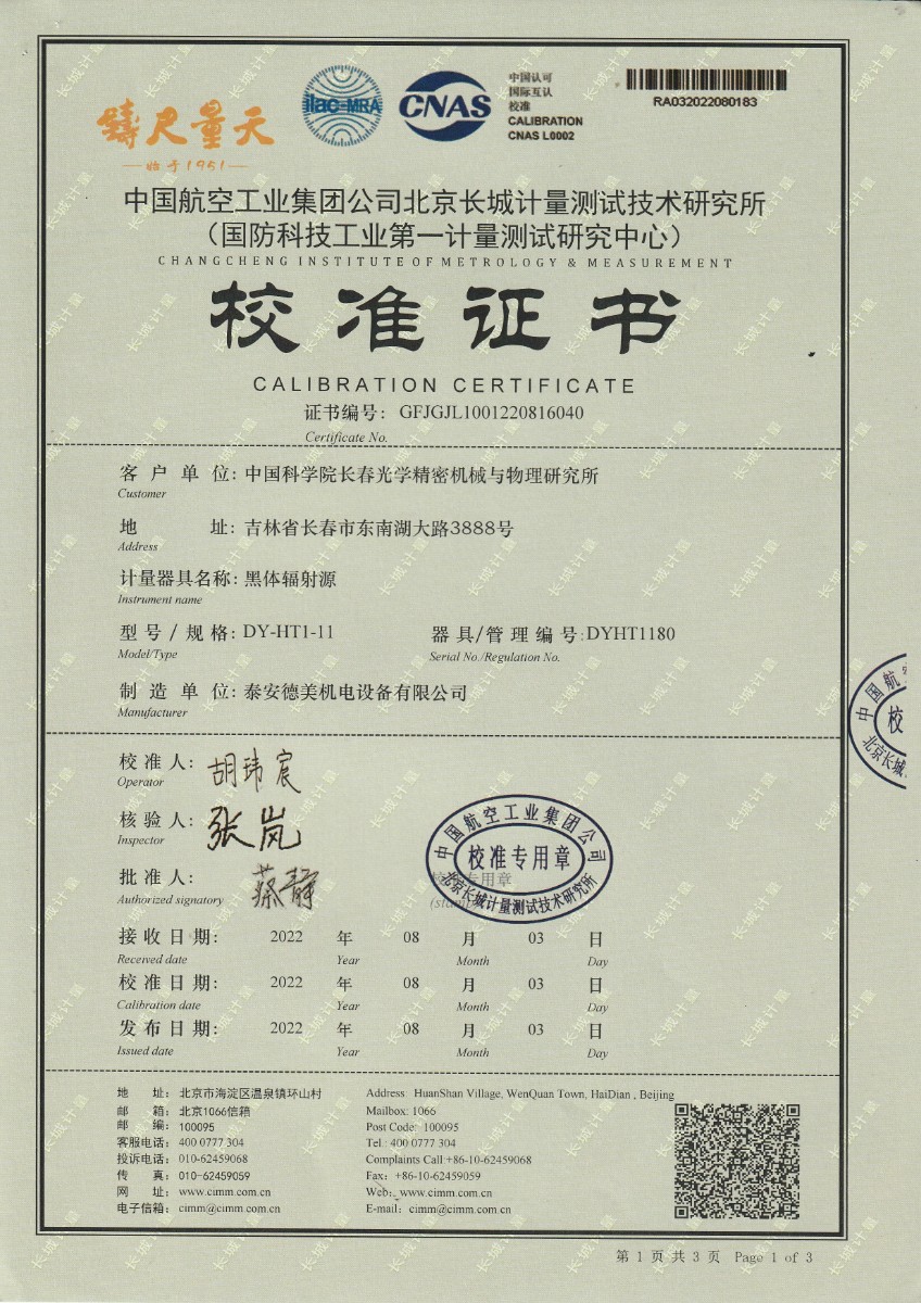 | 上一條:中國(guó)科學(xué)院長(zhǎng)春光學(xué)精密機(jī)械與物理研究所-黑體爐DY-HT1-2 | 下一條:便攜式干體爐(-30-150℃)校準(zhǔn)證書 |