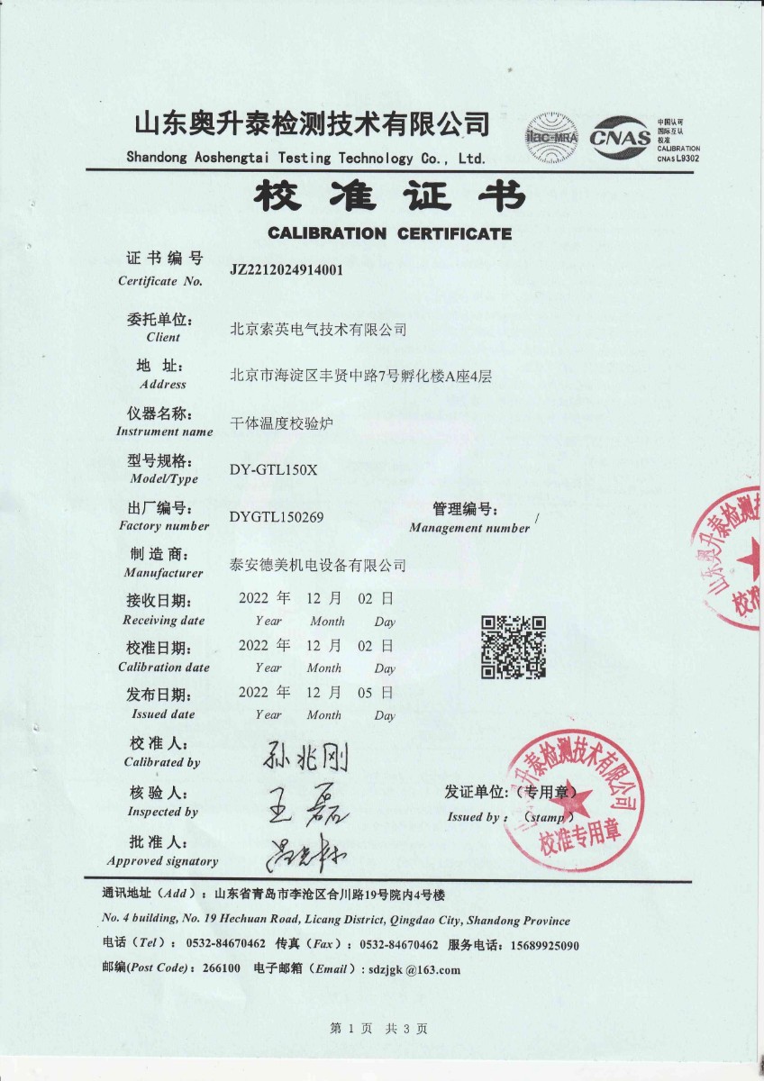 | 上一條:北京索英電氣技術(shù)有限公司 干體溫度校驗(yàn)爐 | 下一條:超低溫面源黑體爐(-40-80℃)校準(zhǔn)證書 |