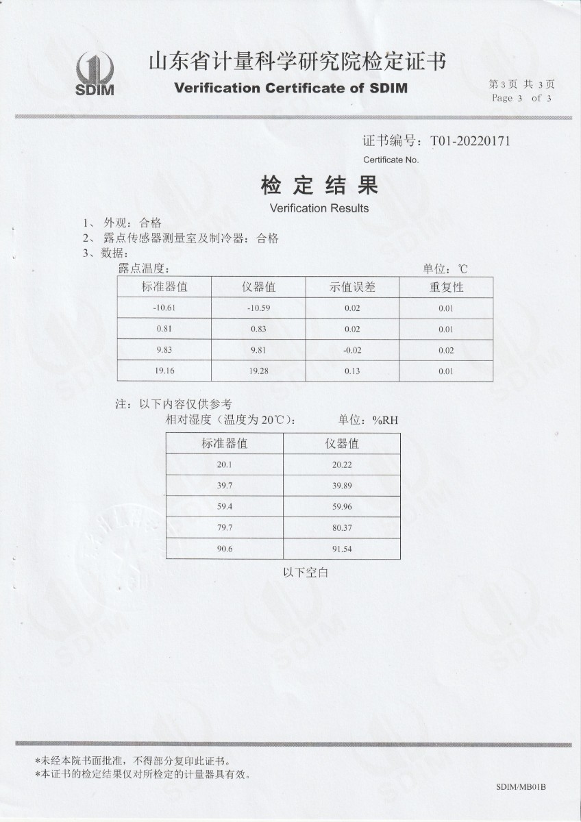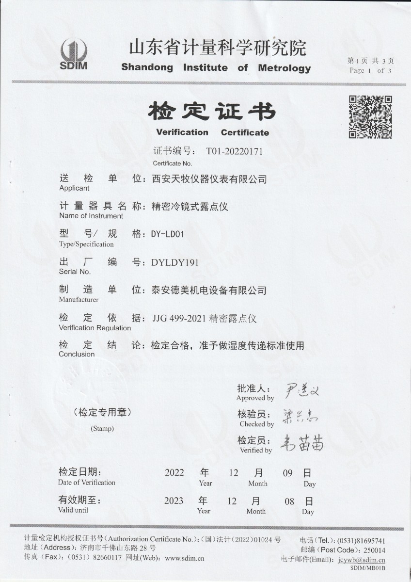 西安天牧儀器儀表有限公司 精密露點儀 檢定證書 2023-1-7 本文被閱讀 10580 次