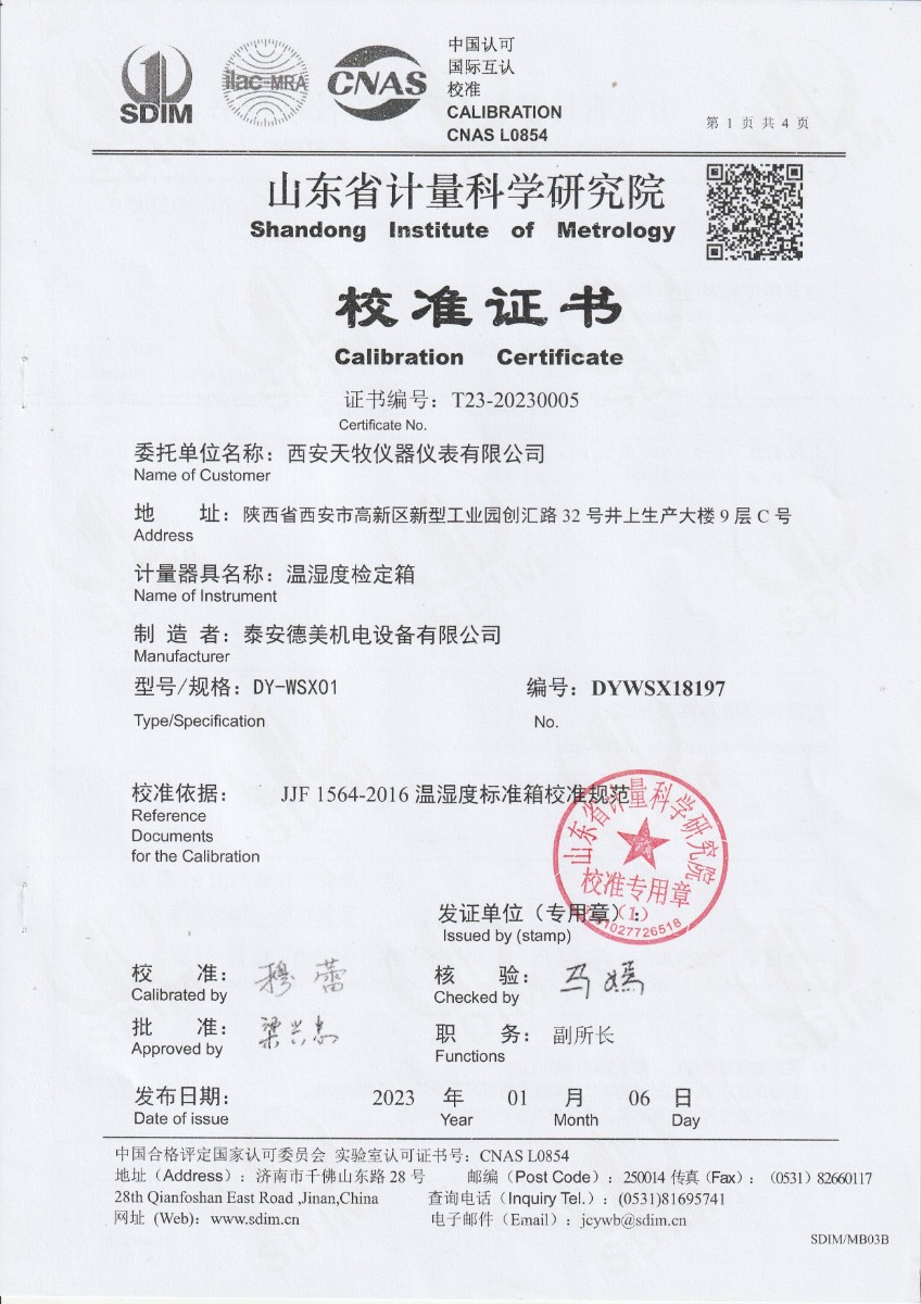 上一條:晶科能源(海寧)有限公司 精密冷鏡式露點(diǎn)儀(溫度) 校準(zhǔn)證書(shū) | 下一條:超低溫面源黑體爐(-40-80℃)校準(zhǔn)證書(shū) |