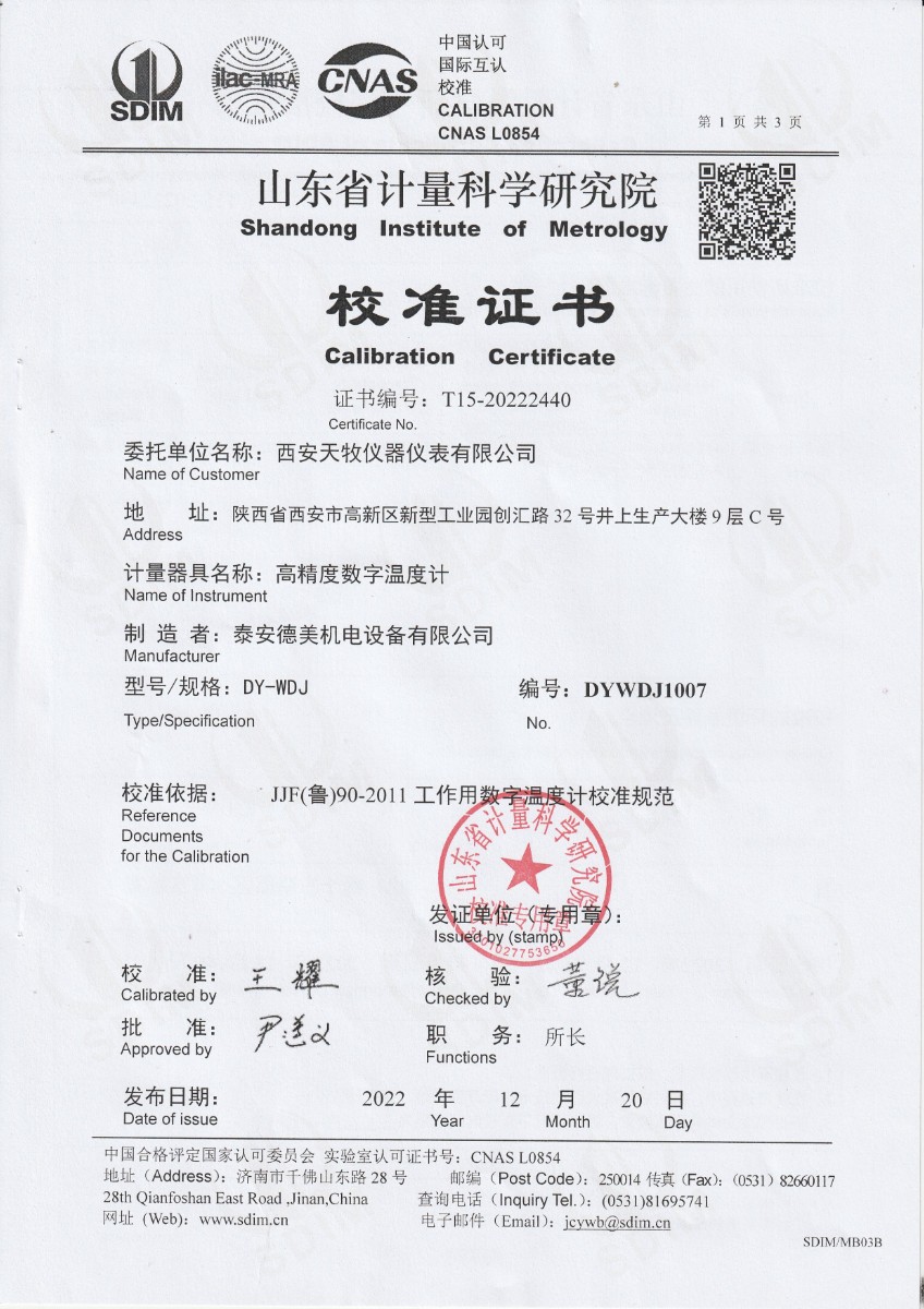 上一條:西安天牧儀器儀表有限公司 溫濕度檢定箱 | 下一條:超低溫面源黑體爐(-40-80℃)校準(zhǔn)證書 |