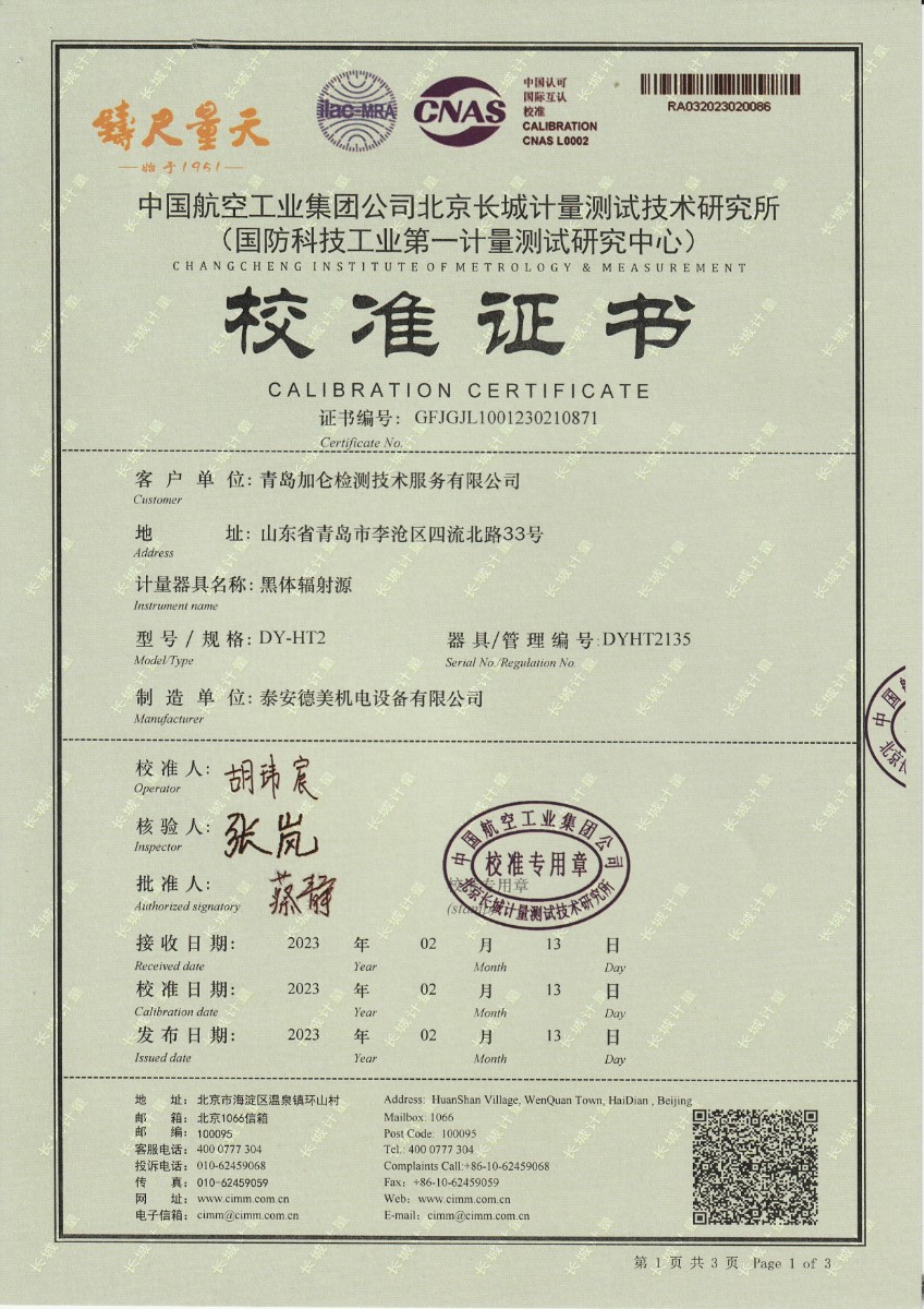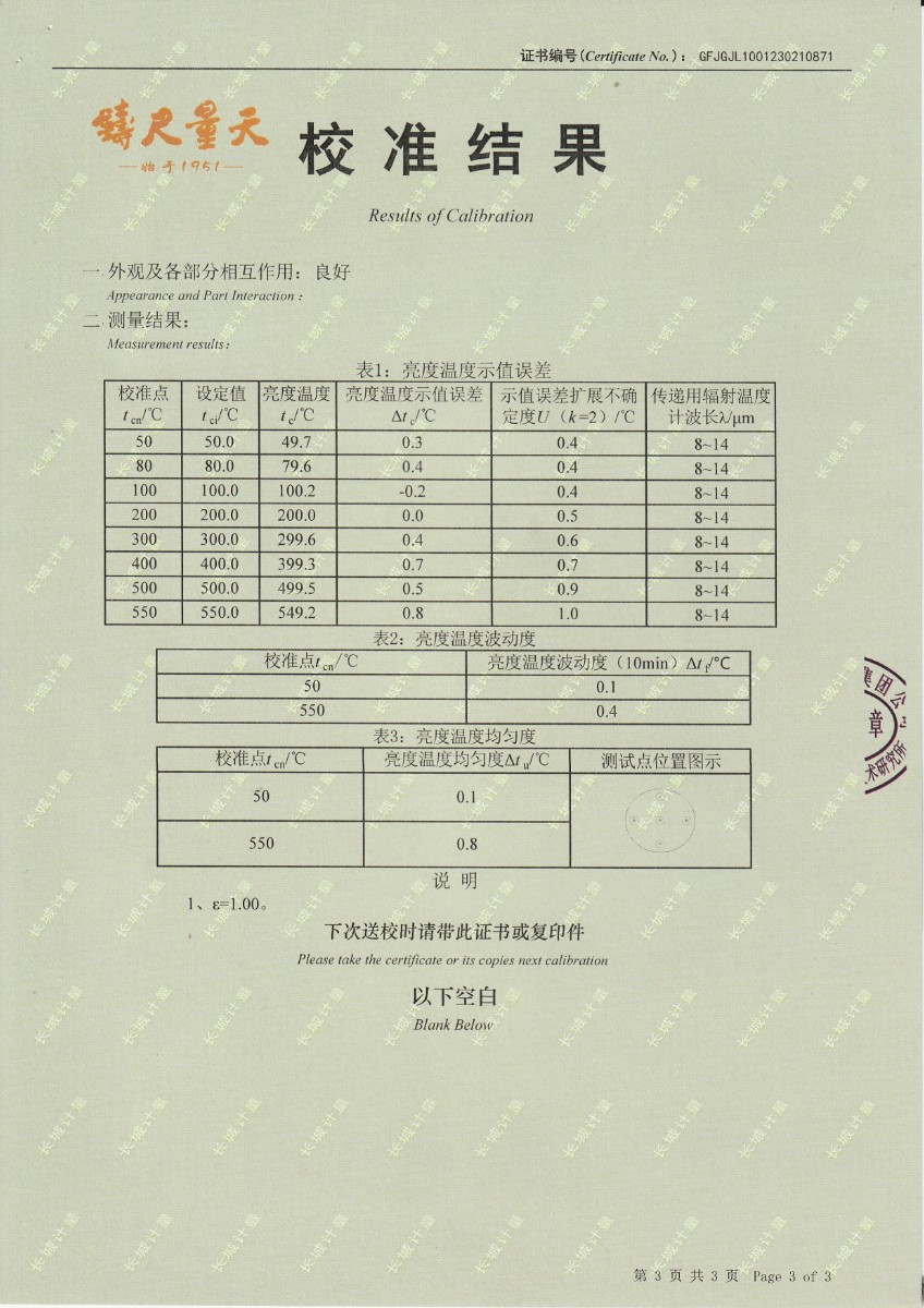 | 上一條:中國民航大學(xué) 黑體爐 校準(zhǔn)證書 | 下一條:便攜式干體爐(-30-150℃)校準(zhǔn)證書 |