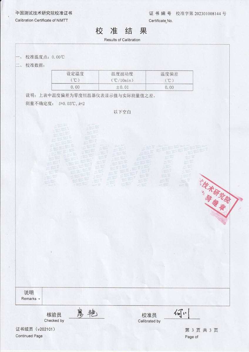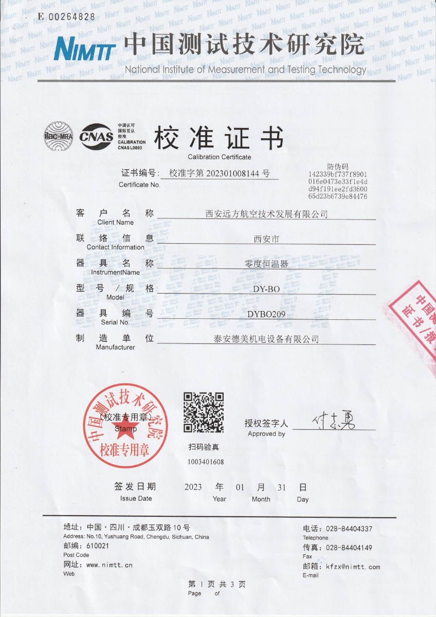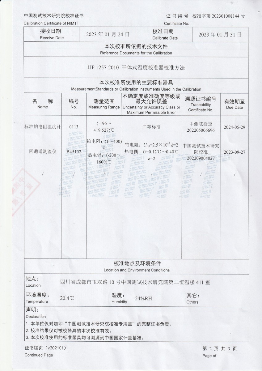 | 上一條:甘肅東興嘉寧新材料有限公司 干體溫度校驗(yàn)爐 校準(zhǔn)證書 | 下一條:便攜式干體爐(-30-150℃)校準(zhǔn)證書 |