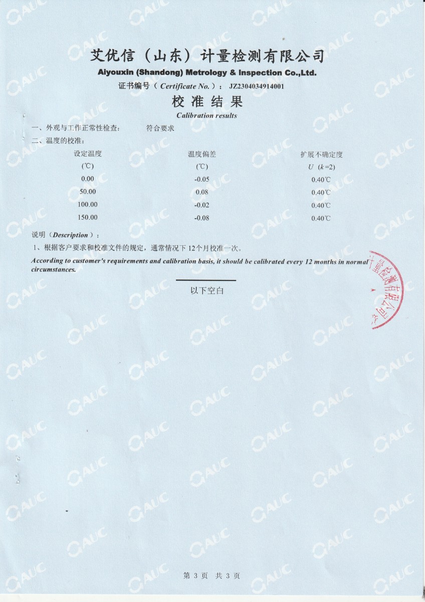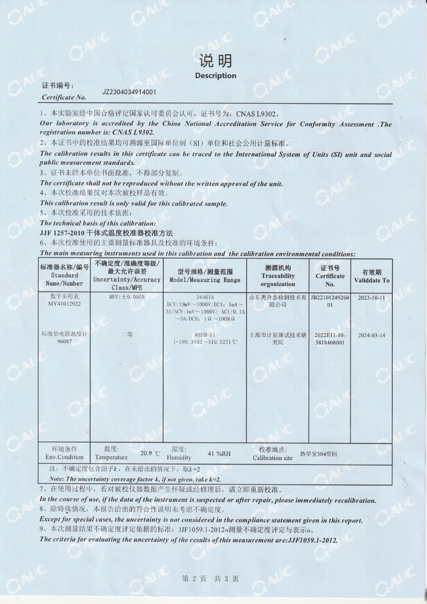 上一條:中財(cái)鋰膜(南京)有限公司 中溫干體爐 校準(zhǔn)證書 | 下一條:便攜式干體爐(-30-150℃)校準(zhǔn)證書 |