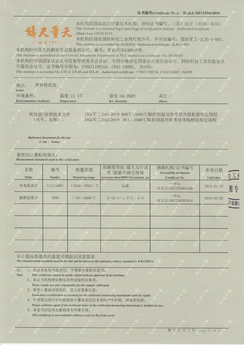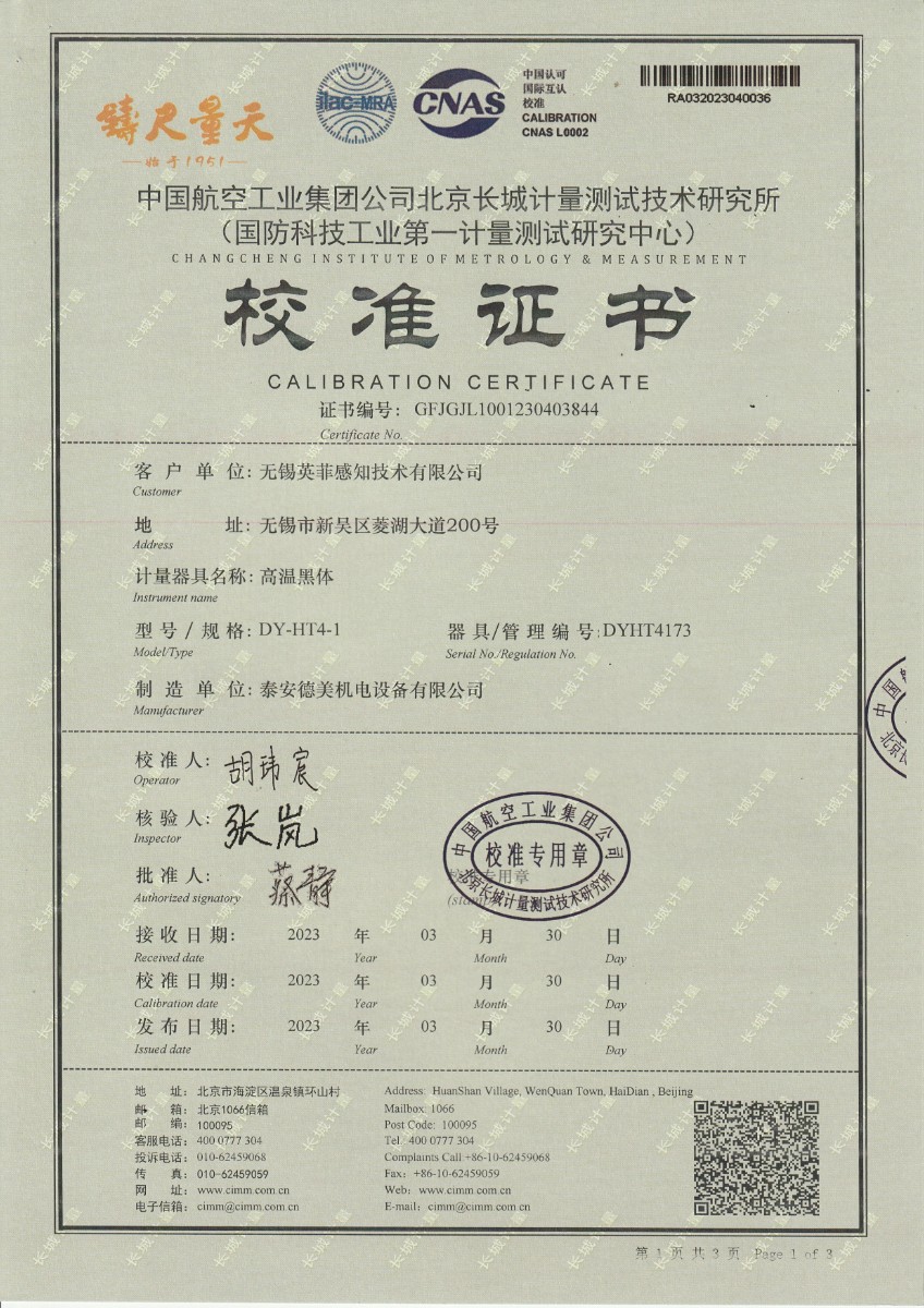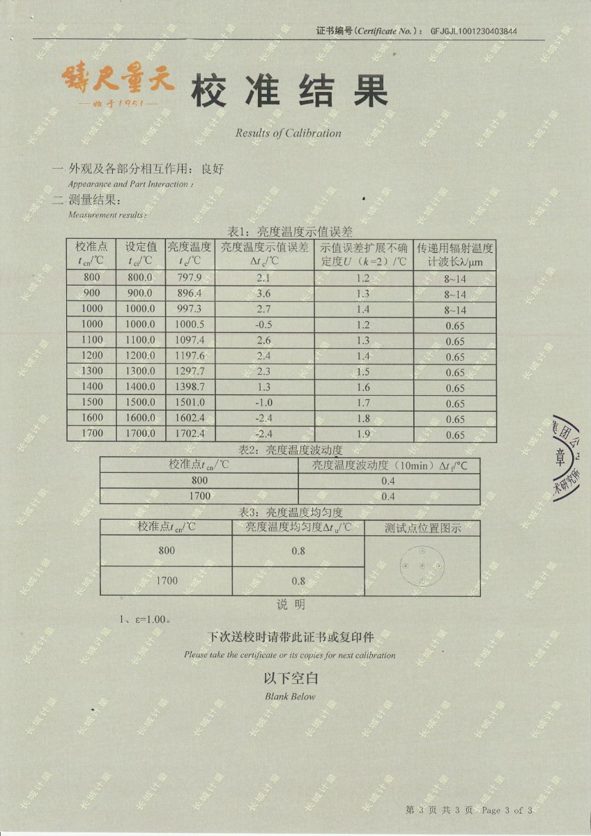 | 上一條:晶科能源(義烏)有限公司 溫濕度檢定箱 校準證書 | 下一條:便攜式干體爐(-30-150℃)校準證書 |