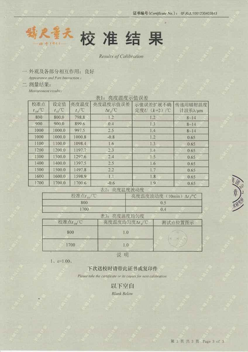 | 上一條:無錫英菲感知技術(shù)有限公司 高溫黑體 校準(zhǔn)證書 (2) | 下一條:便攜式干體爐(-30-150℃)校準(zhǔn)證書 |