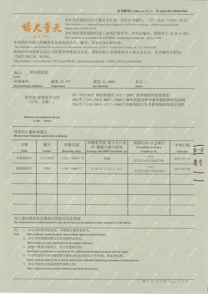 上一條:中航工程集成設(shè)備有限公司 黑體輻射源 校準(zhǔn)證書(shū) (1) | 下一條:超低溫面源黑體爐(-40-80℃)校準(zhǔn)證書(shū) |