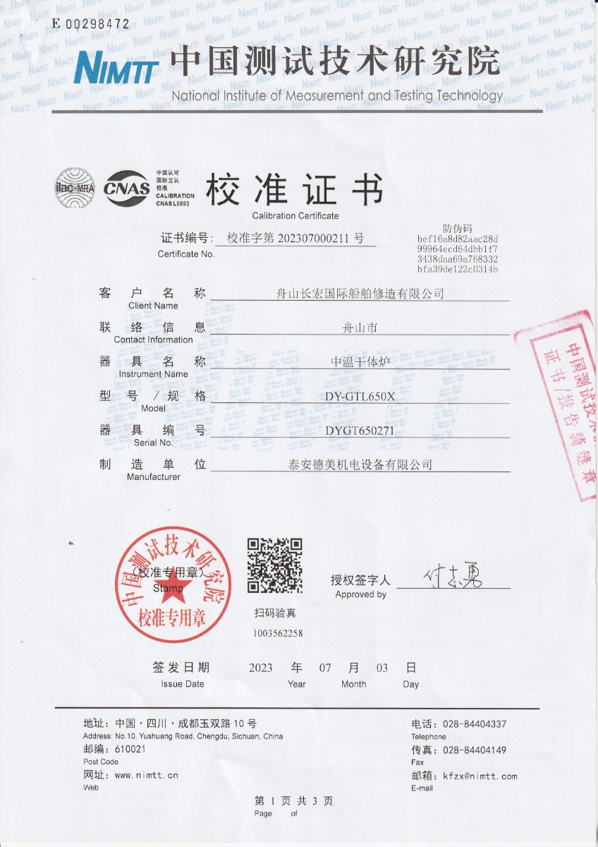 舟山長宏國際船舶修造有限公司-中溫干體爐 2023-7-13 本文被閱讀 11663 次