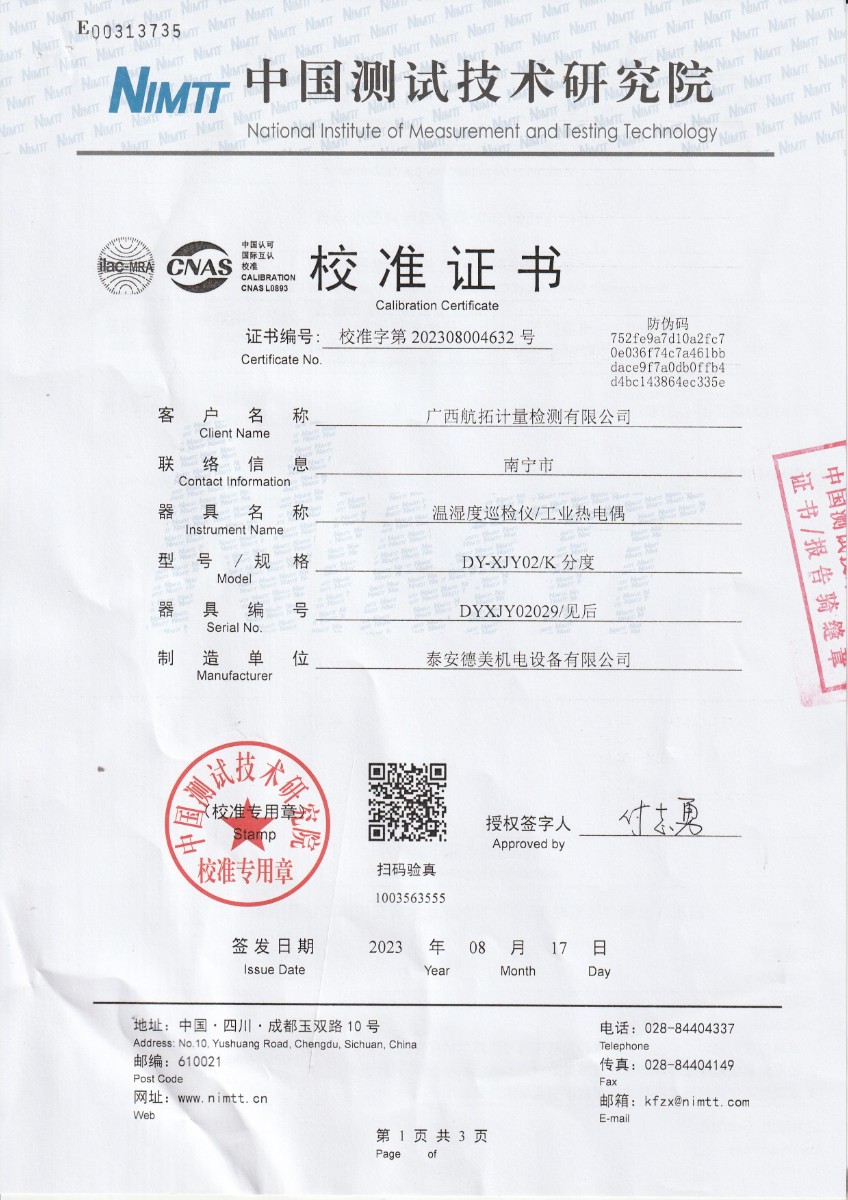 廣西航拓計量檢測有限公司-溫濕度巡檢儀、工業(yè)熱電偶 2023-8-23 本文被閱讀 11489 次