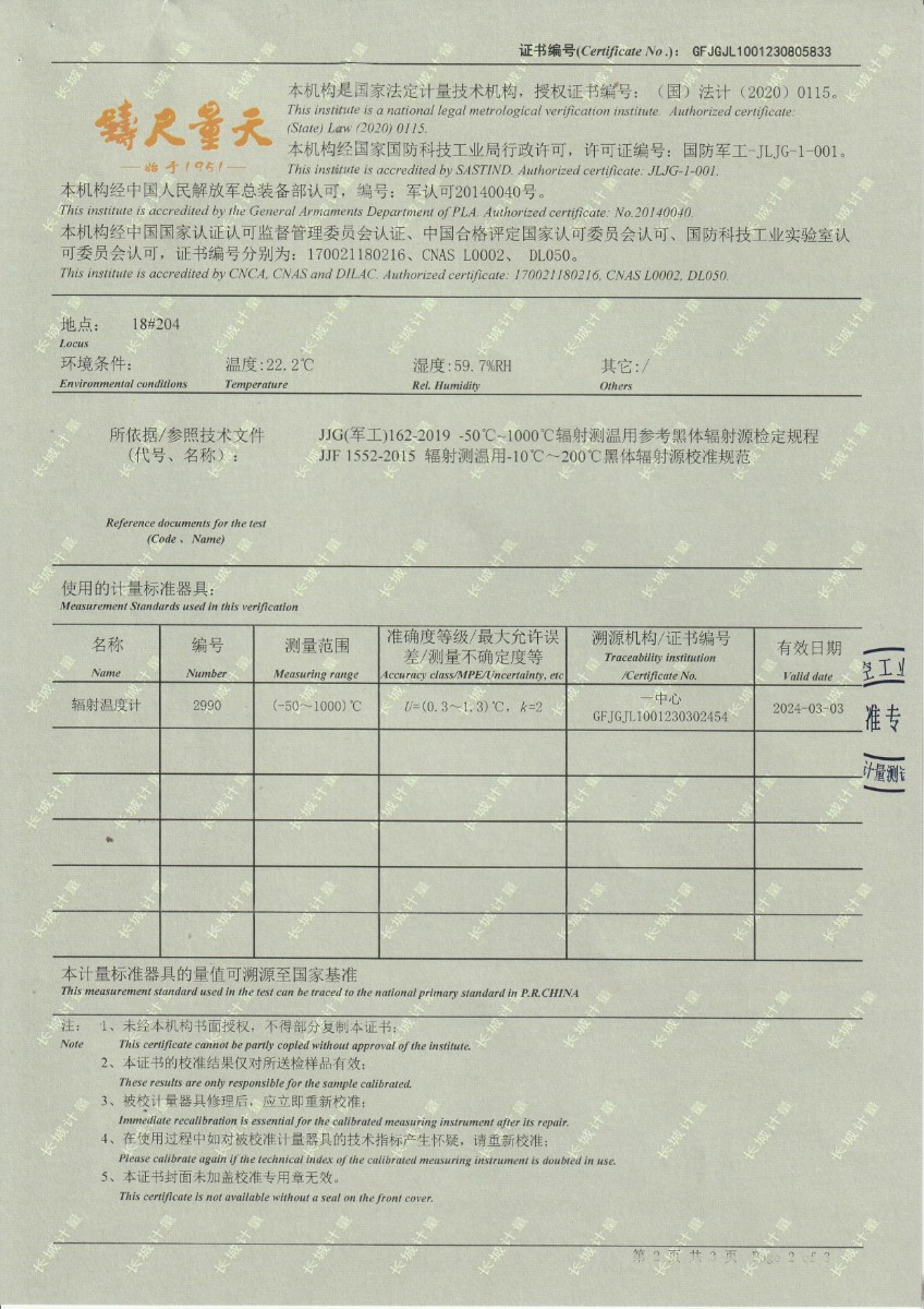 | 上一條:廣西航拓計量檢測有限公司-溫濕度巡檢儀、工業(yè)熱電偶 | 下一條:便攜式干體爐(-30-150℃)校準(zhǔn)證書 |