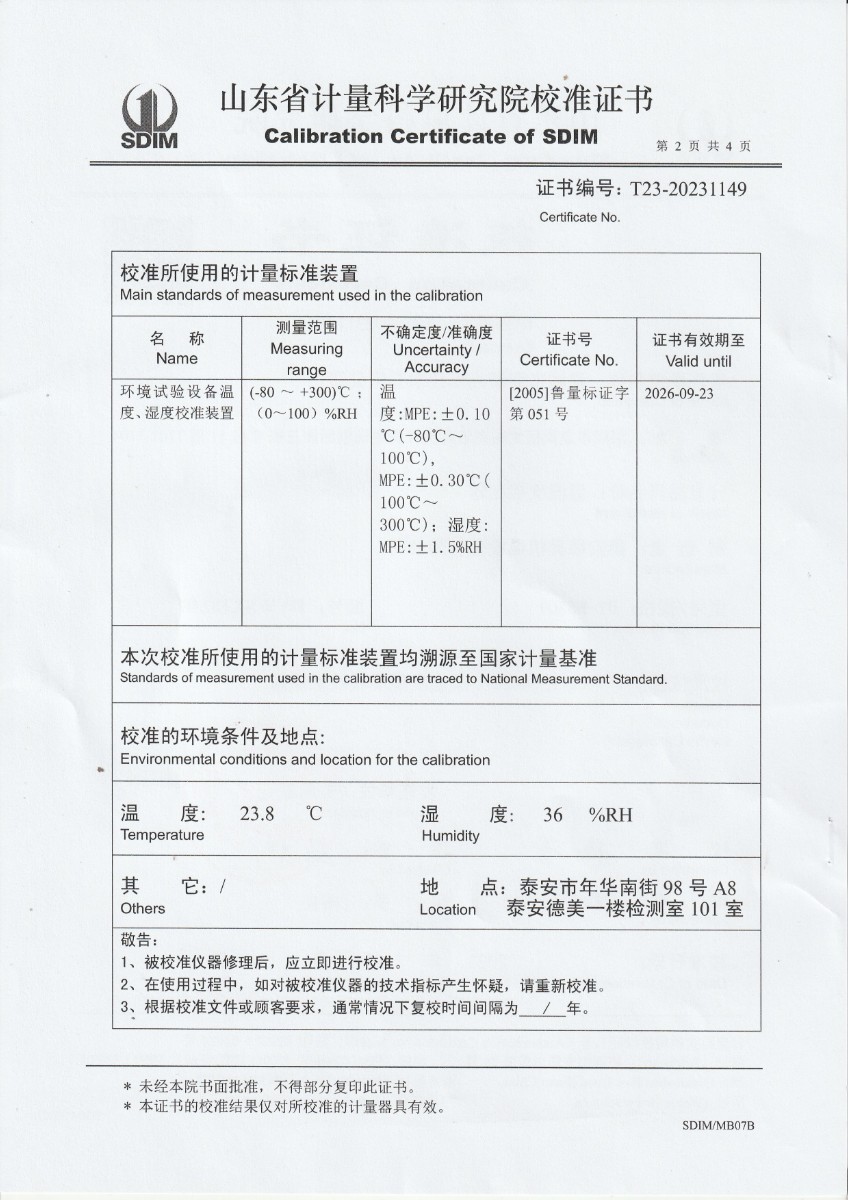 上一條:鉑熱電偶S23-7081檢定證書下一條:超低溫面源黑體爐(-40-80℃)校準(zhǔn)證書