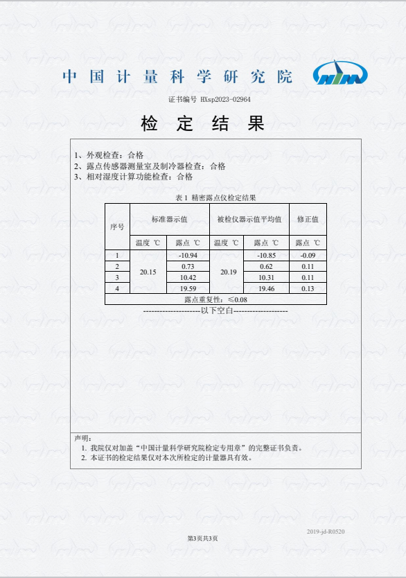 露點儀檢定證書 2023-11-9 本文被閱讀 8444 次