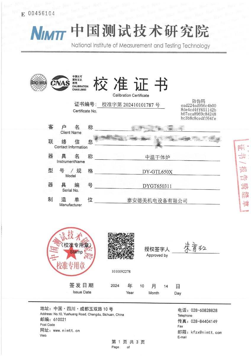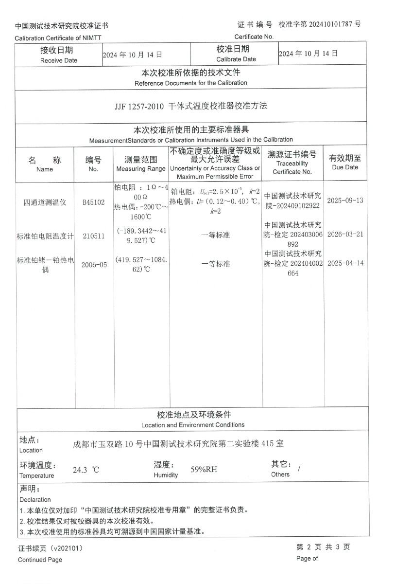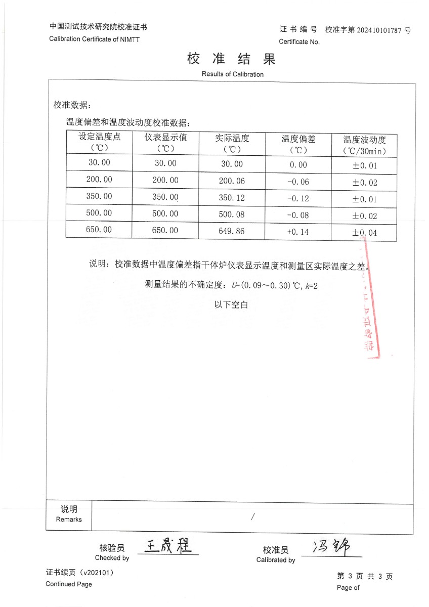 | 上一條:熱電偶用補償導(dǎo)線KEJN校準(zhǔn)證書 | 下一條:便攜式干體爐(-30-150℃)校準(zhǔn)證書 |