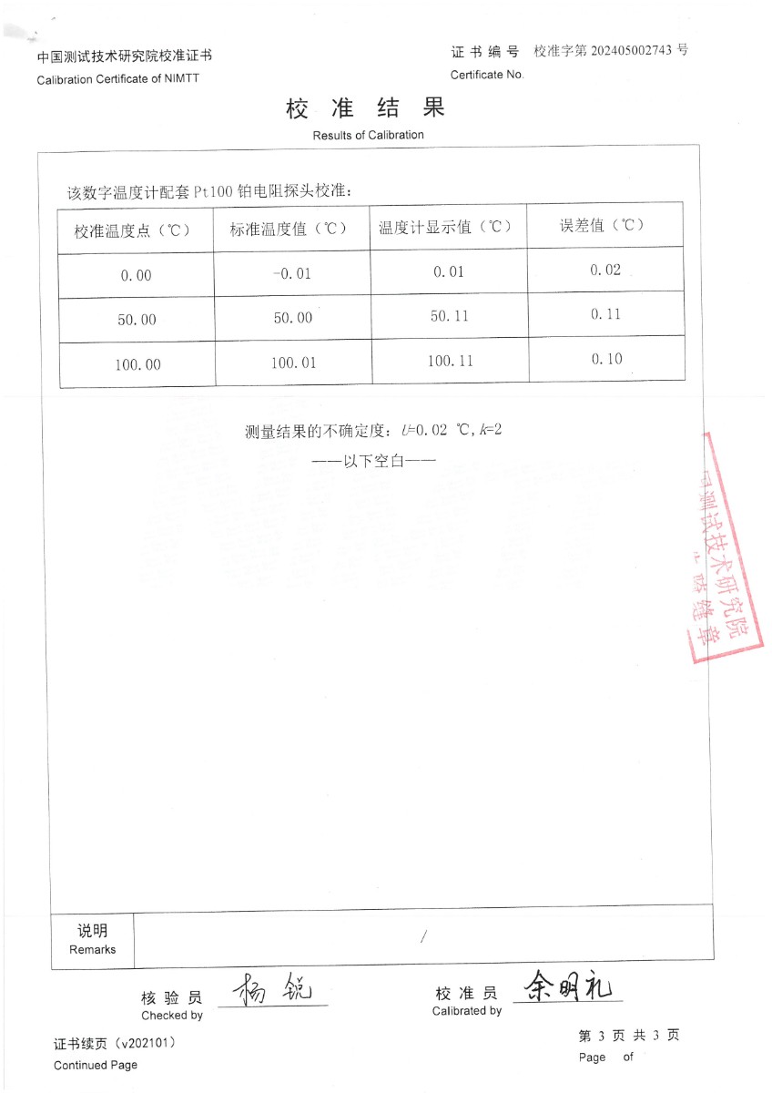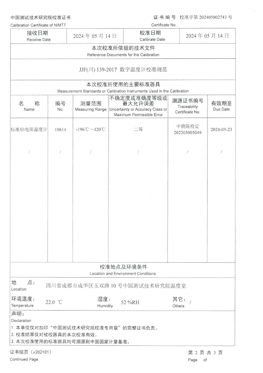 手持式高精度數(shù)字溫度計校準證書 2024-5-18 本文被閱讀 6166 次
