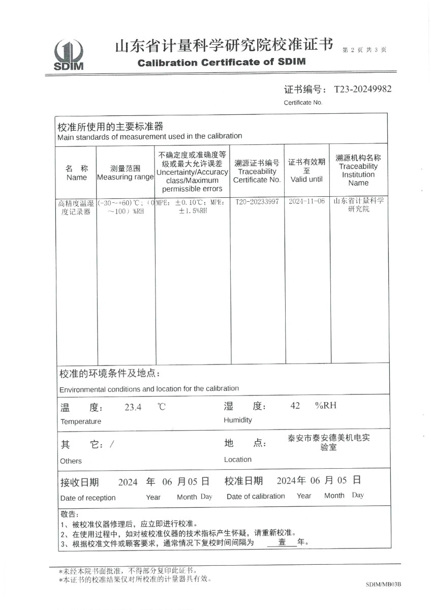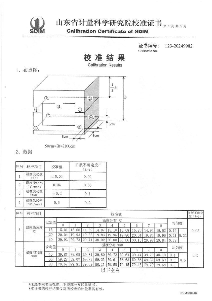 溫濕度檢定箱(-20~65℃)校準(zhǔn)證書 2024-6-11 本文被閱讀 6361 次