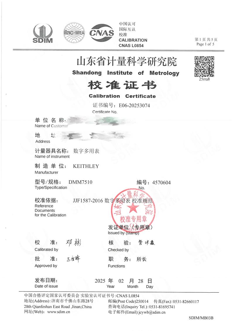 | 上一條:高精度數(shù)字溫度計(jì)校準(zhǔn)證書(shū) | 下一條:便攜式干體爐(-30-150℃)校準(zhǔn)證書(shū) |