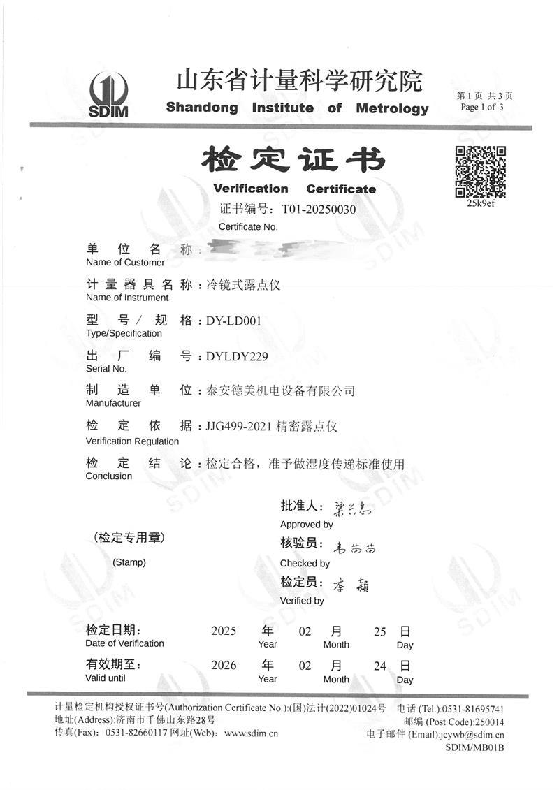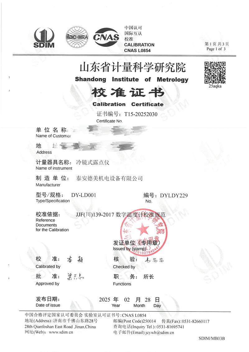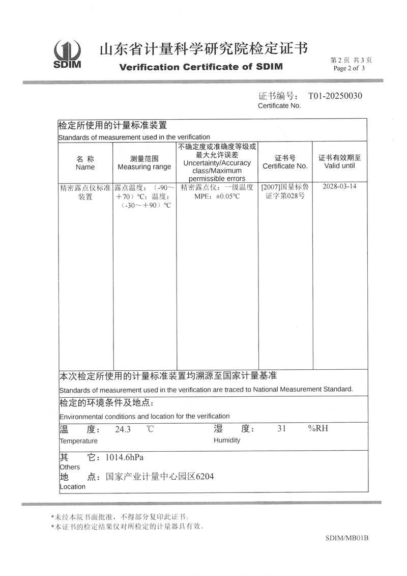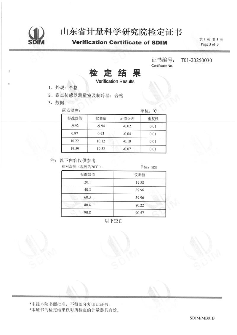 露點儀檢定、校準證書 2025-3-8 本文被閱讀 3733 次