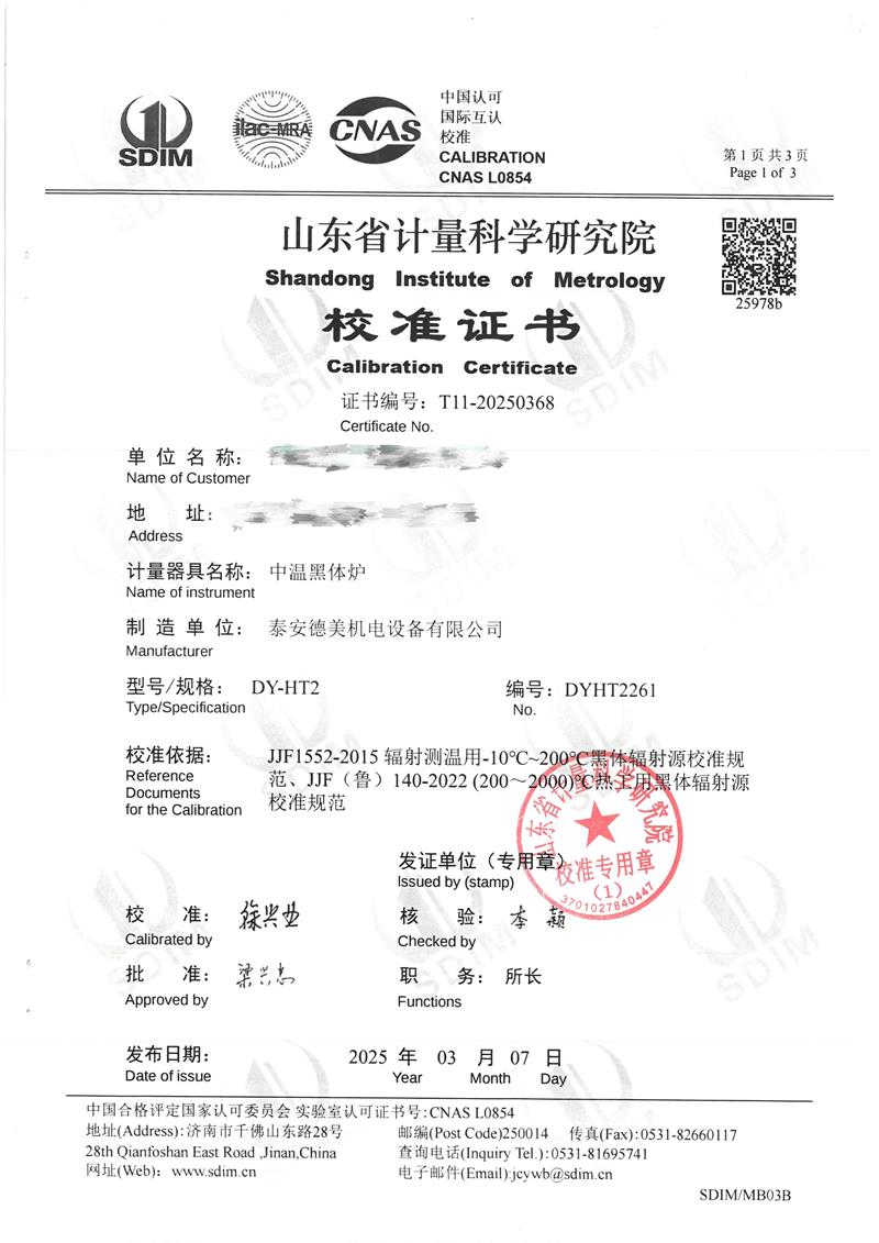 中溫黑體爐(50~700℃)校準(zhǔn)證書 2025-3-12 本文被閱讀 4546 次